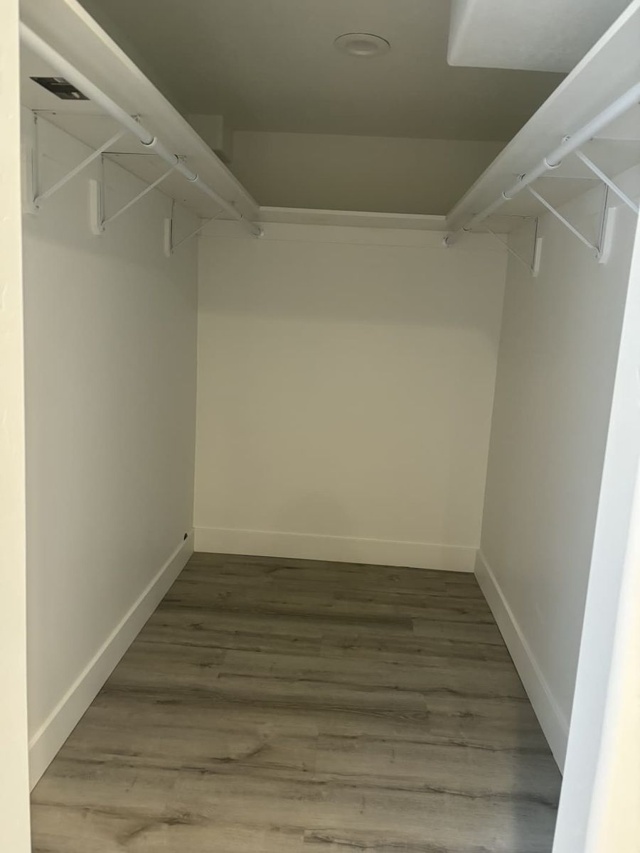 The primary suite features a large walk-in closet and an oversized shower, giving you a true master-bedroom feel—something you don’t often find in basement rentals.