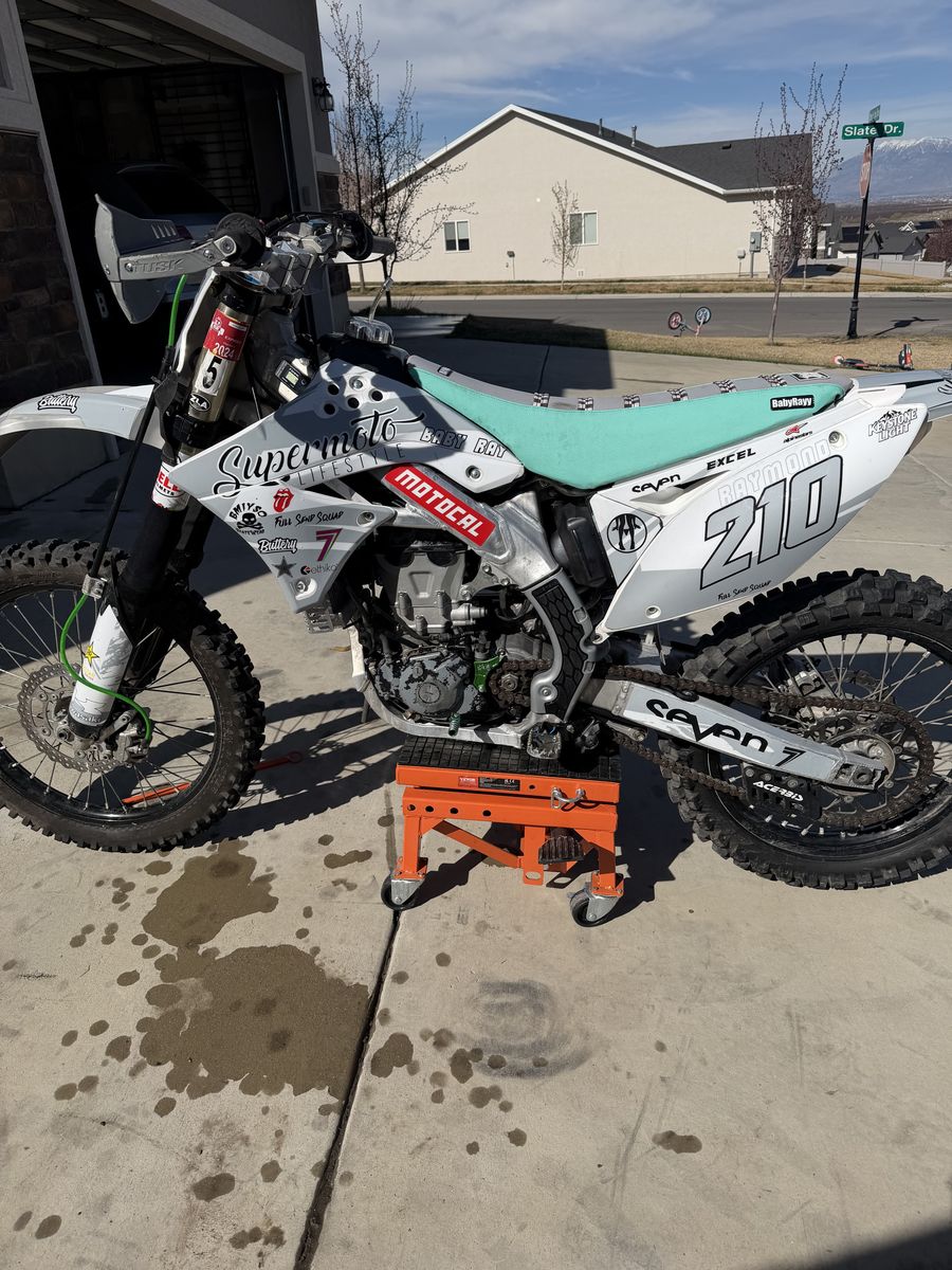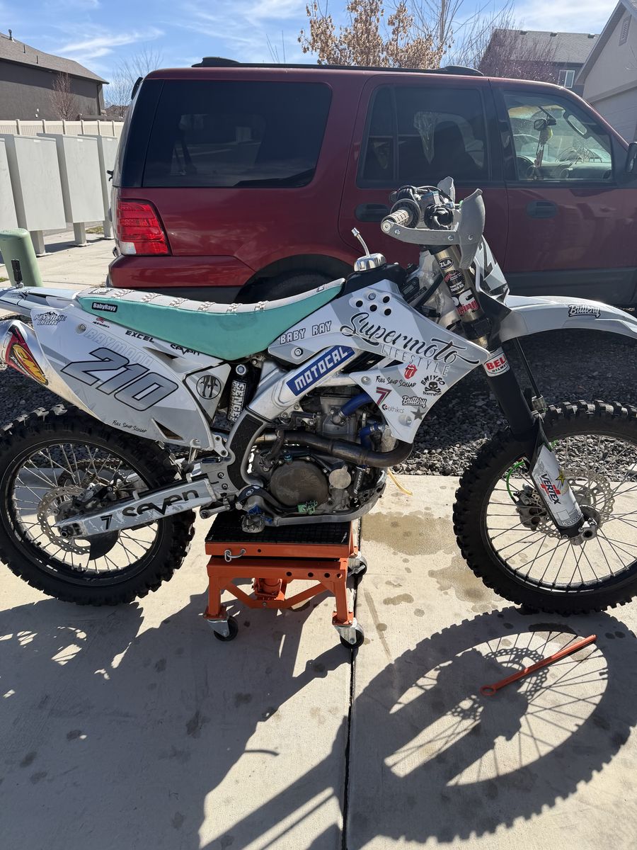 Just got this bike back to looking to sell or trade for ktm 350 or yz450f maybe the right quad too New wiseco piston and jug,timing chain and tensioner,valves,injector,fuel pump,maf sensor,coolant temp sensor, coil and plug,tps sensor, stator, grips, radiator gaurds, case saver.rebuilt rear shock,tires,bar bushing and clamps All put on 2 hours ago Bike also has upgrades that included Boyesan water pump,fmf power core slip on with power bomb,Bigger radiators,tusk pegs, forks gold valves,radiator cap,hand guard. Probably many other upgrades I’m missing this is a absolute unit and ready for its next owner