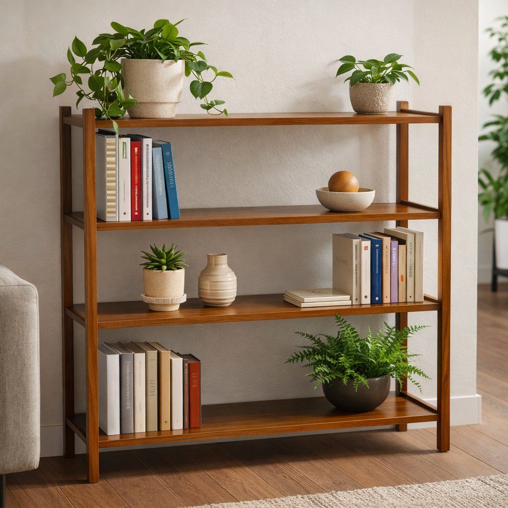 Beautiful mid-century modern style wooden bookshelf with clean lines and a warm wood finish. Features 4 sturdy shelves—perfect for books, plants, décor, or storage. Its minimalist design fits great in living rooms, offices, bedrooms, or apartments. Solid and functional with a timeless look. Condition: Good overall condition with light wear from normal use (see photo). Shelf are and storage unit in Provo, and we can meet you if interested