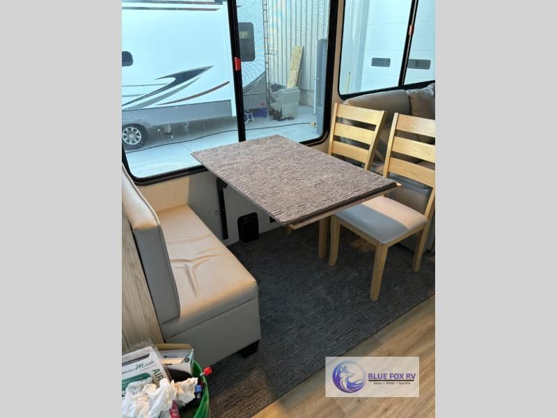 A benchmark chassis creates a space saver upper deck with each one of these Avenue fifth wheels by Alliance RV! The 101 in. wide-body construction gives you more room to walk around and the flush slide out floors throughout prevent any tripping. There are Azdel composite sidewalls inside and out, and a seamless fully walkable PVC roof for extreme durability, zero maintenance, and it is more solar reflective because of the bright white color. Twin 13,500 BTU A/C units provide 27,000 BTUs of cooling power which are ultra quiet and independently controlled keeping you comfortable during your entire trip. And, the fully enclosed and heated underbelly means that you can extend your camping season into the colder months if you like. You are sure to love the "no carpet zone" making each Avenue easy to clean and allergen free, not to mention pet friendly with vinyl flooring throughout. And, strategically placed Atrium windows in the bedroom and living area will not only provide more light, cross ventilation and fresh air, but bring a spectacular view of your surroundings right inside. You can maximize your space throughout with innovative storage solutions like the hidden storage behind the TV, inside the end tables, ottoman, and dinette chairs. Come choose your favorite model today!