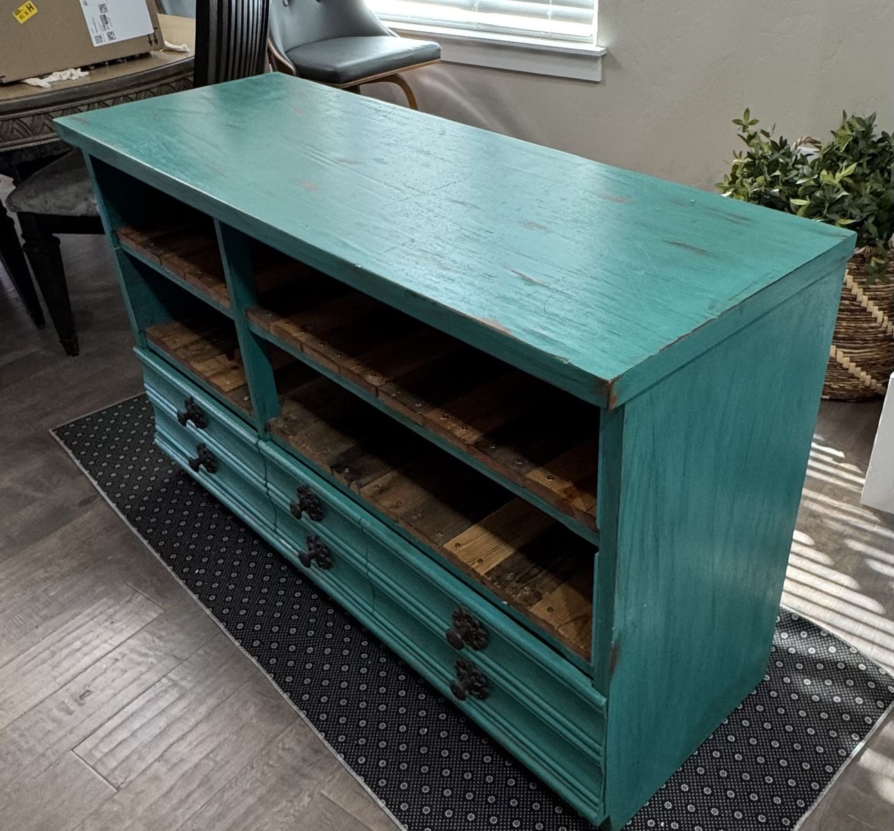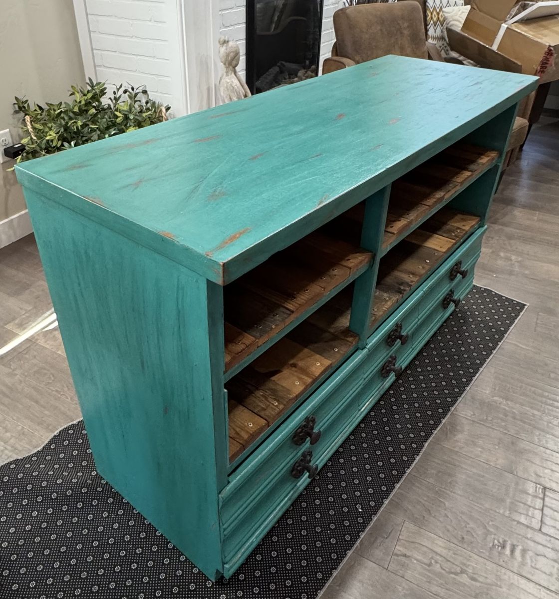 We refurbished a dresser to use as a coffee bar, changed our decoration style so we are selling it. 50” wide 18” deep 32” tall $60 obo