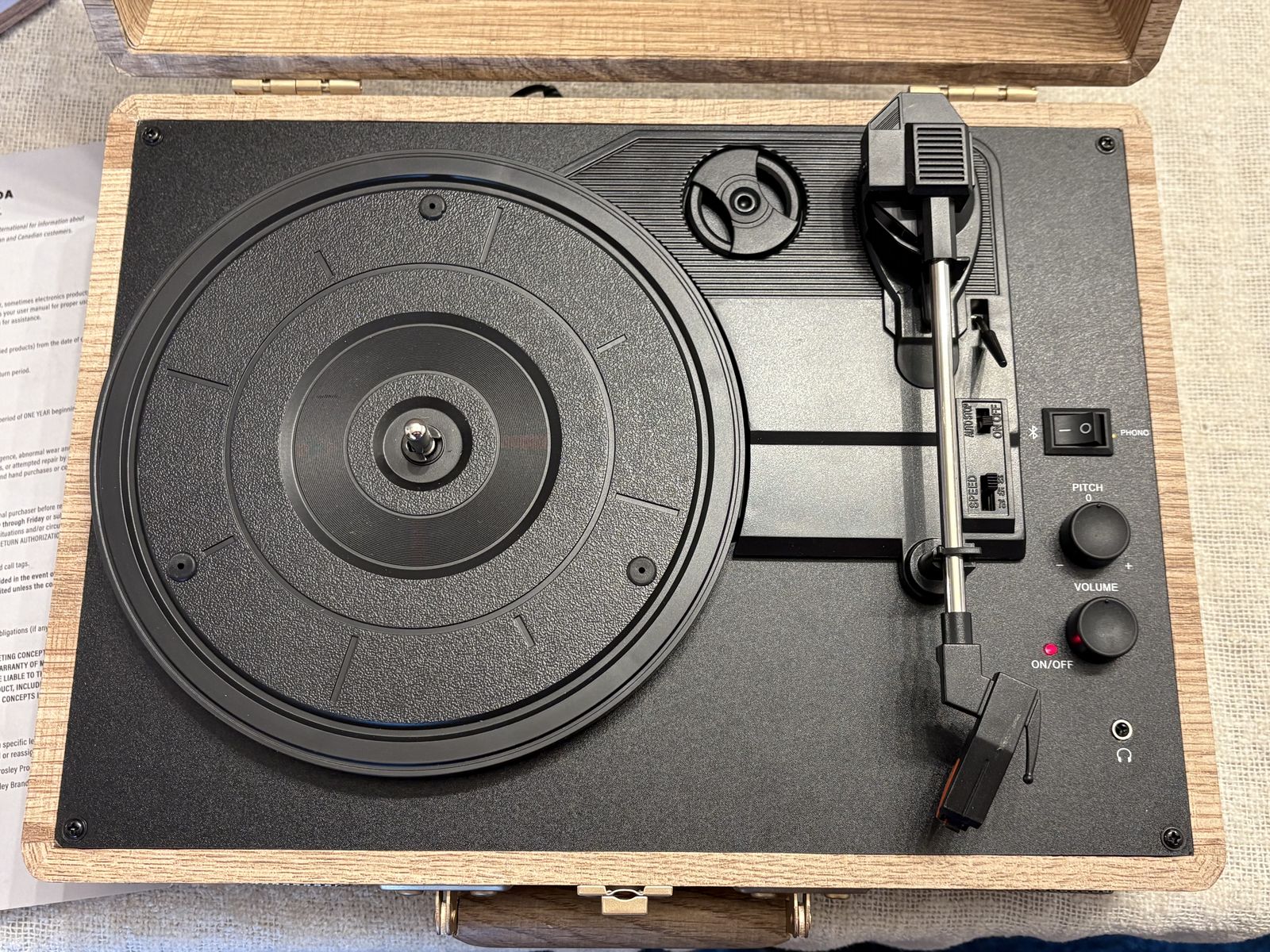 Plays vinyl records at 3 different speeds (33, 45; 78 rpm)