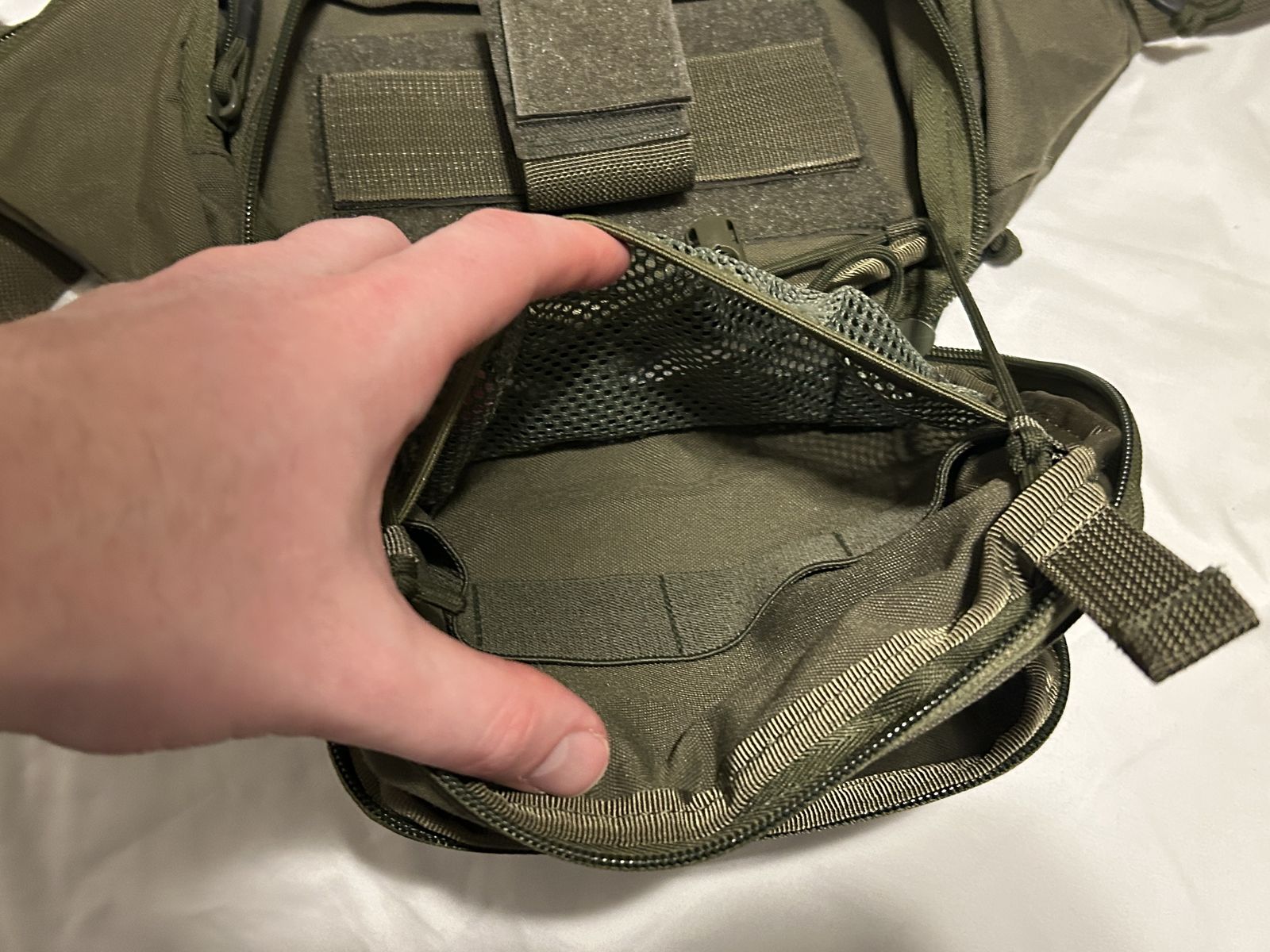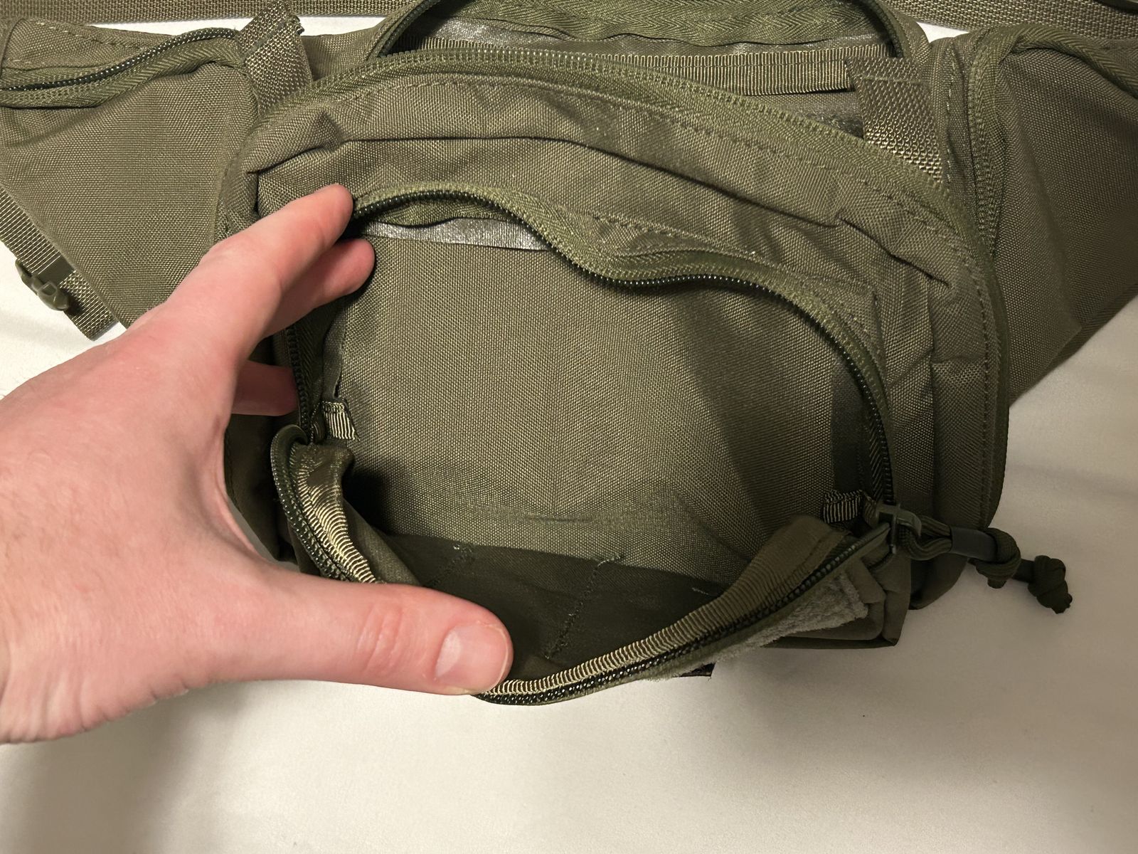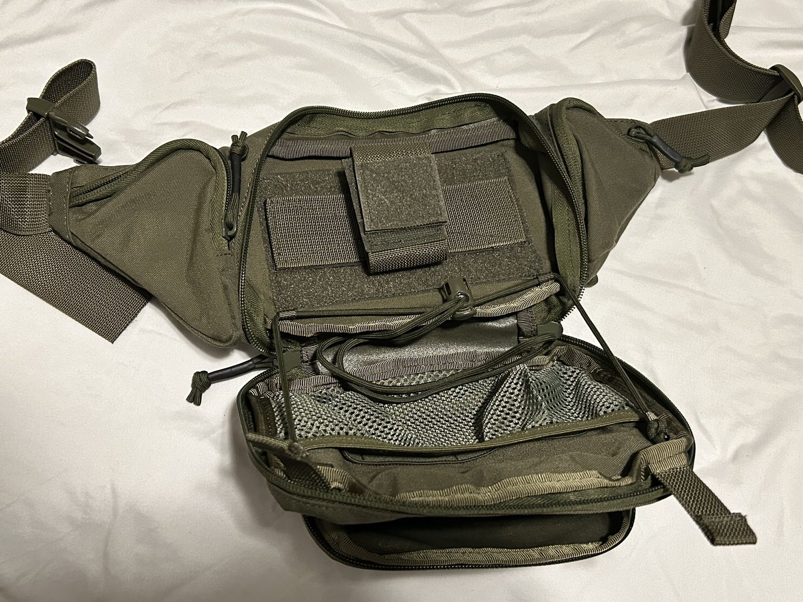 VenmoLightweight and comfortable tactical fanny pack with tons of pockets and pouches. Only wore twice and in near perfect condition. It’s a perfect pack for hiking, hunting, fishing, or for EDC. It has a Velcro compatible backing and comes with a holster. I did cut one of the elastic pieces on the holster portion (picture included) as I found it just got in the way and restricted fast access. I figure most people interested in this pack will most likely choose their own holster anyway.