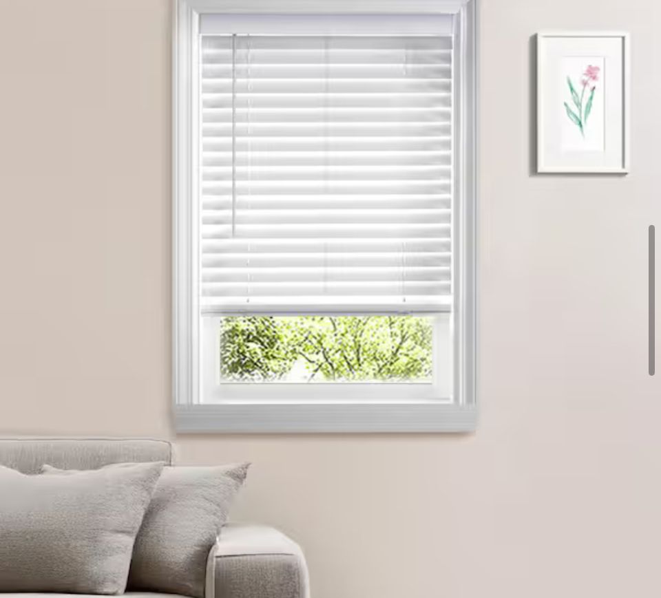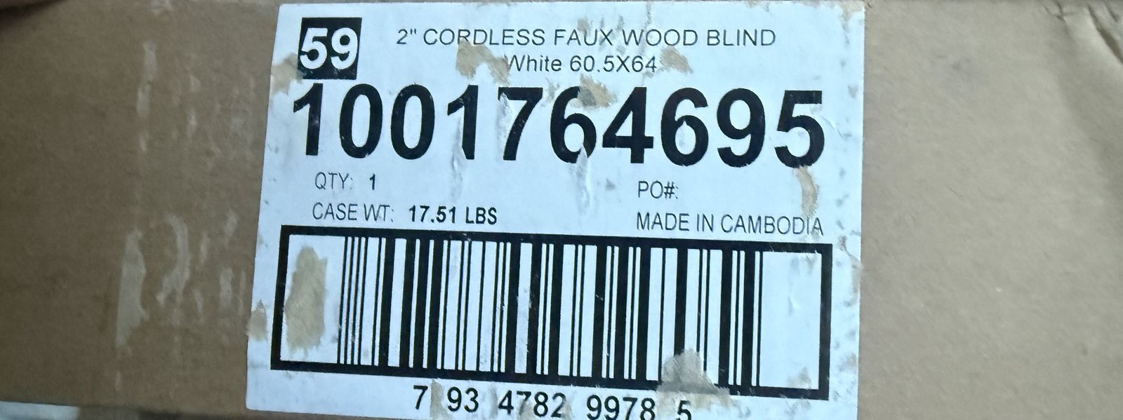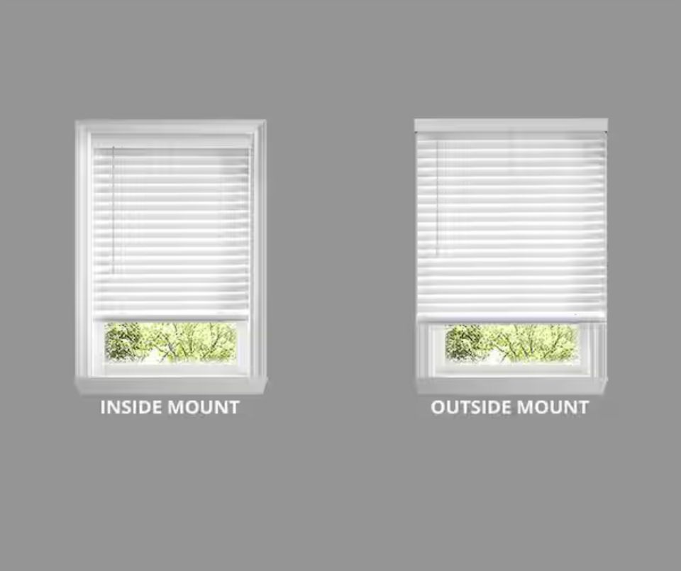Actual faux wood blind width measures 60 in. due to a 0.5 in. deduction at the factory to ensure a proper fit on the window or door frame For an inside mount, faux wood blind fits windows: 60.5 in. W For an outside mount, order a faux wood blind 4.0 in. wider than the overall area to be covered (2 in. to both sides) White cordless room darkening faux wood blinds have 2 in. room darkening slats Faux wood blind comes equiped with a decorative head rail and hold down brackets Wand tilt and cordless function for the faux wood blind eliminates unsightly cords, allowing for child and pet safety Faux wood blind is humidity resistant, regulating heat and moisture