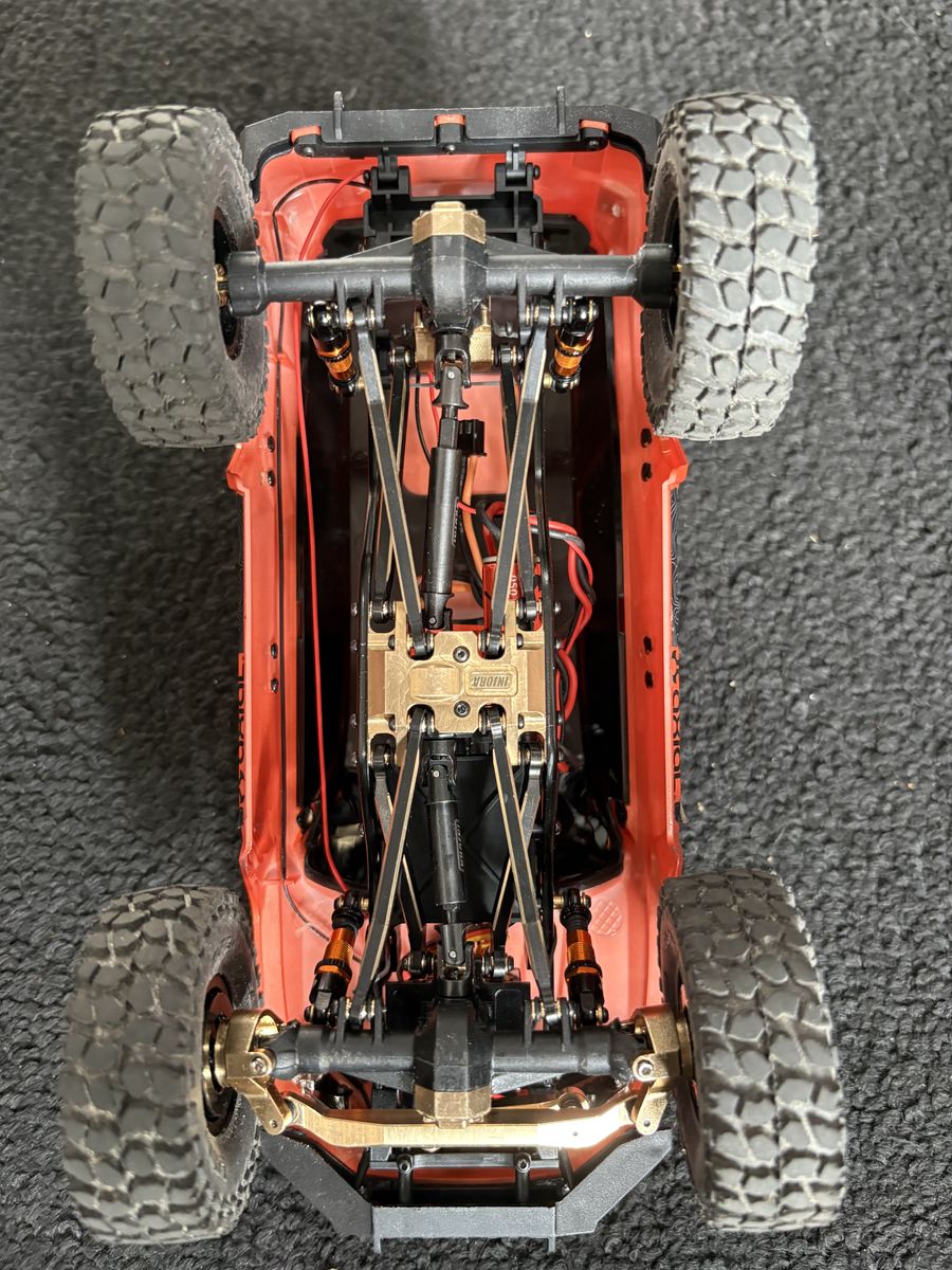 VenmoSCX24 Toyota 4-Runner Ready To Run comes with radio, charger, and battery. Injora Brass Build works pretty 60/40 front/rear weight 50/50 side to side sits on Meus wheels brass rings in front with LGRP black label mt 57mm tires . text or call for long list build sheet you couldn't build one for less