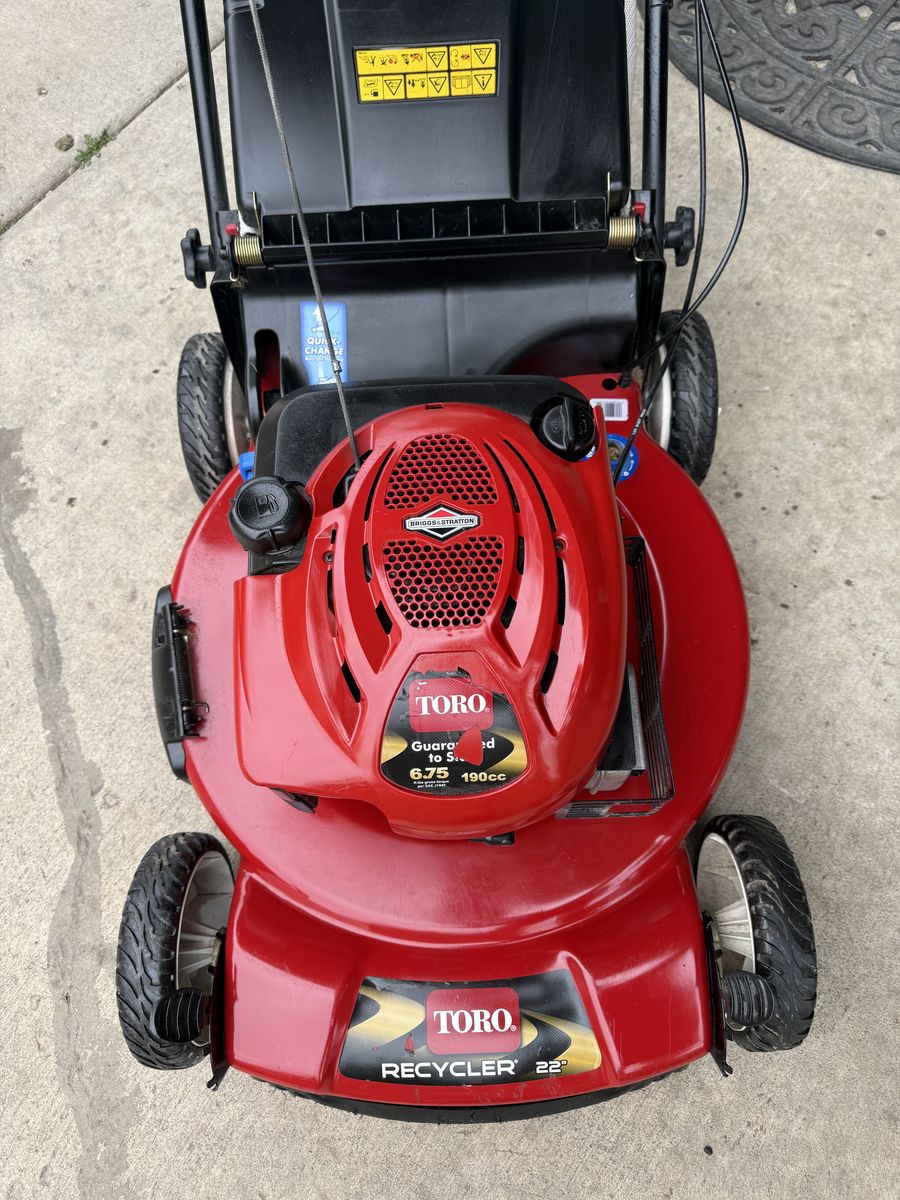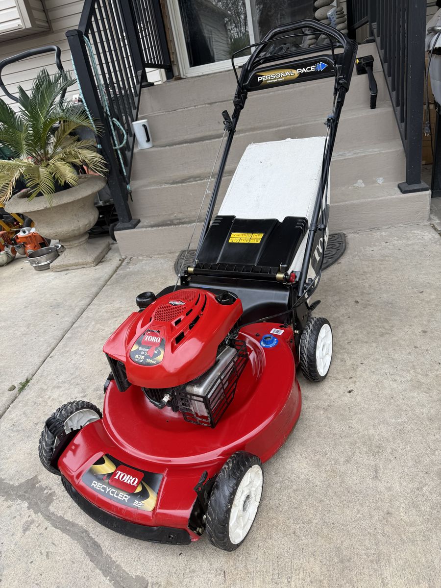 22 inch Toro recycler 6.75 hp self propel variable speed rear wheel drive runs good text only cash only