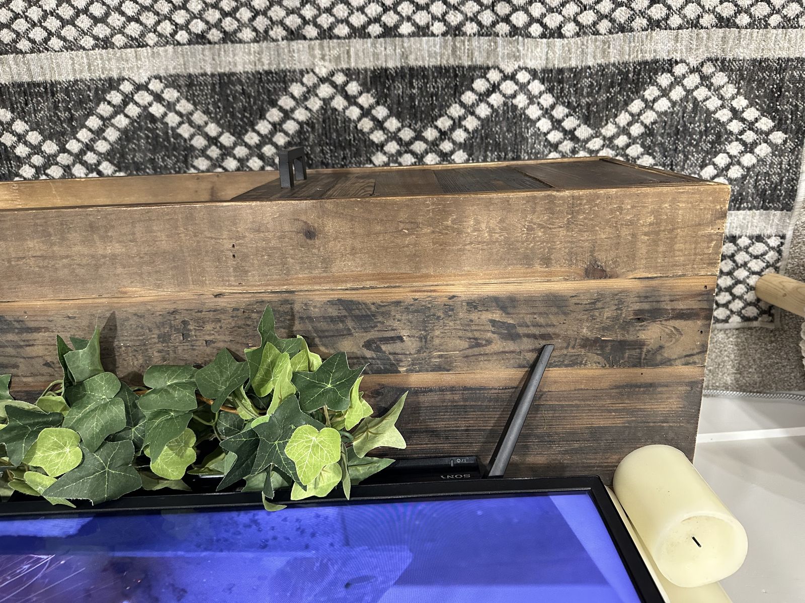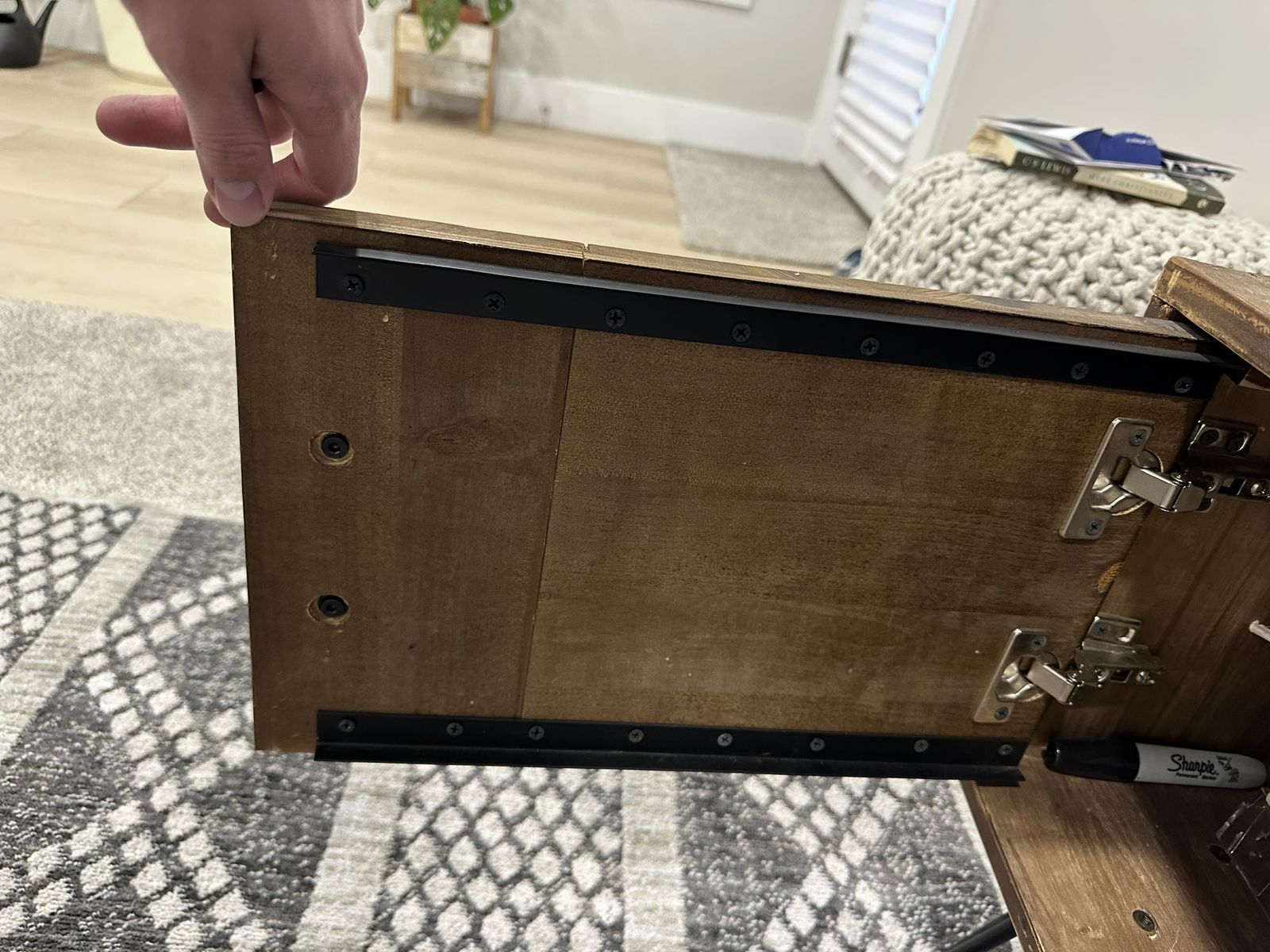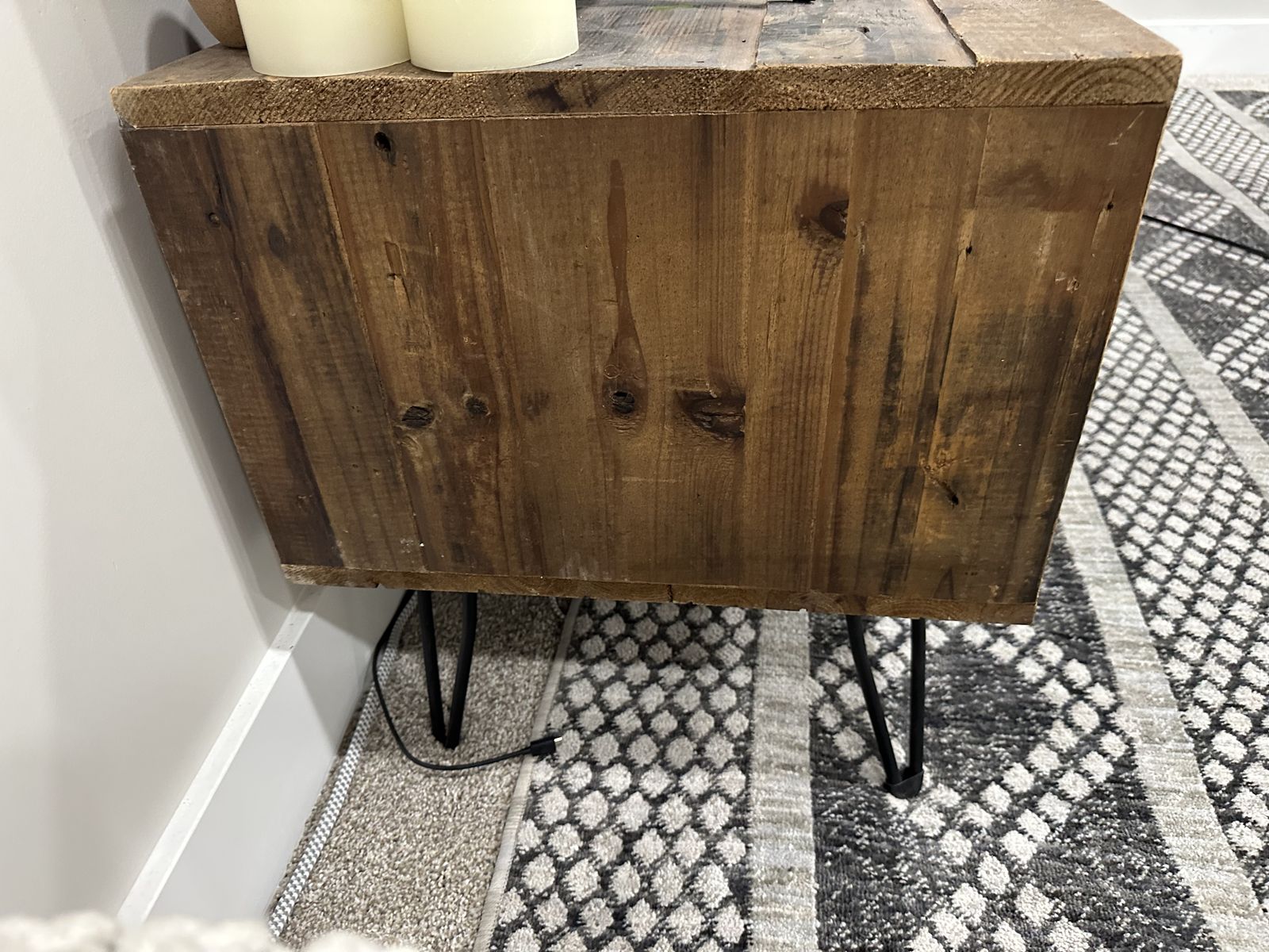 VenmoFull Height- 20” Wood Height- 12” Width- 60” Depth- 18” We have loved this TV stand but are pregnant with our first and will be doing a screen less home. So we don’t need it anymore!