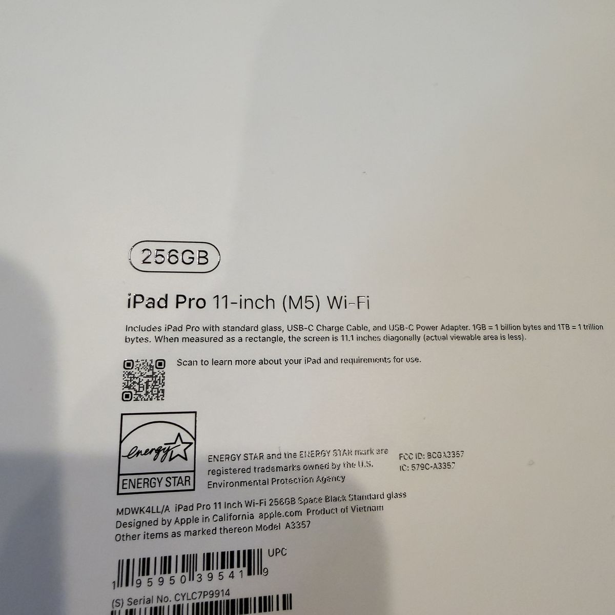Selling a brand new iPad Pro 11-inch with the M5 chip and 256GB storage. This is the latest generation model and it’s the WiFi version.