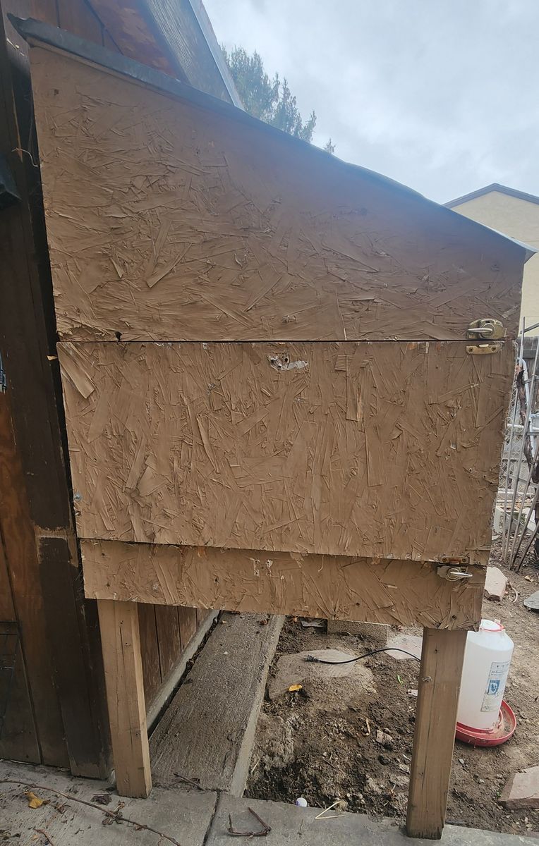 This Super Deluxe chicken coop comes complete with a perch for three, side vent, metal roof, and a secure ez access egg retrieval portal. But does it have a heated floor, you may ask? Why yes. Yes it does . Act now and you will also receive some extra bonus chicken wire and a heated waterer for those cold winter months. That's right ladies and gentlemen, we're getting out of the chicken ranching business once and for all. For only 50 American dollars, the price of a tank of gas, all this can be yours. Our loss is your gain!