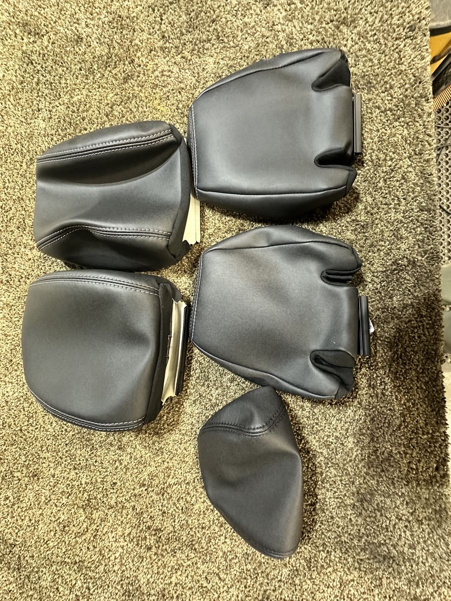 ApplePayFactory Leather replacement Ford Bronco Seats with rear arm rest. Front seat are fitted for plastic backing inserts. Does not fit slip-cover front seats. Fits 22’-26’ Ford Bronco Big Bend/outer banks