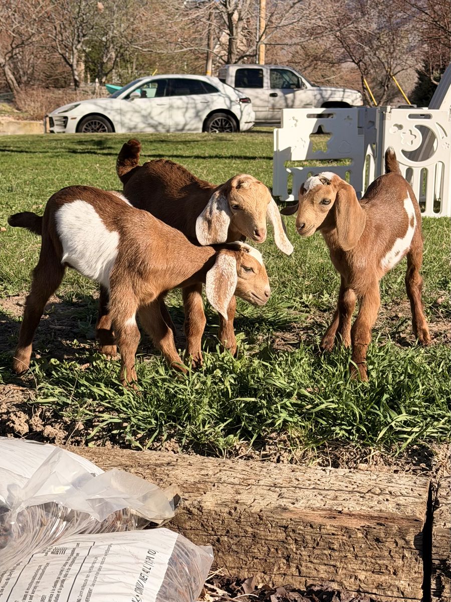 These kids are Disbudded and De-scented. Herd is UTD on Deworming and Vaccinations. Ready to go now as Bottle Babies, or will be weaned and banded by May 20th.