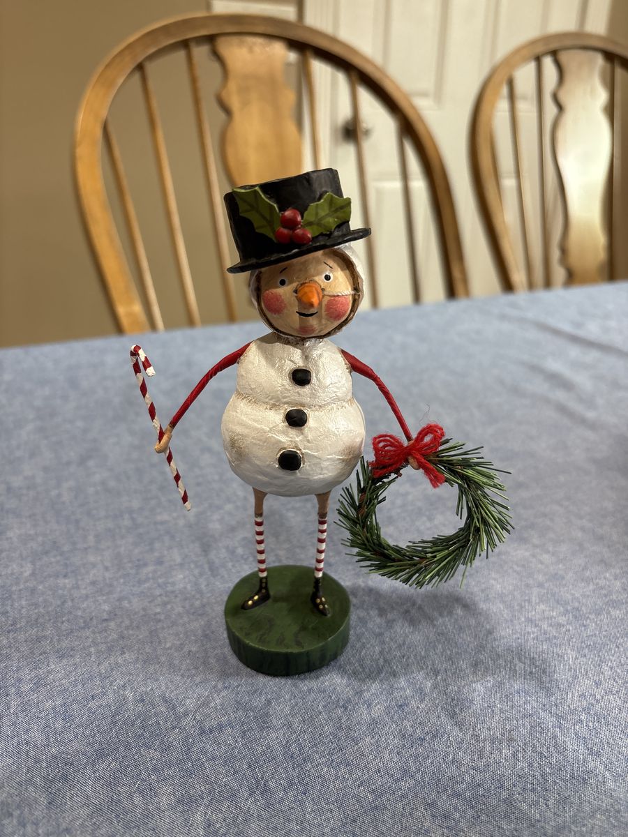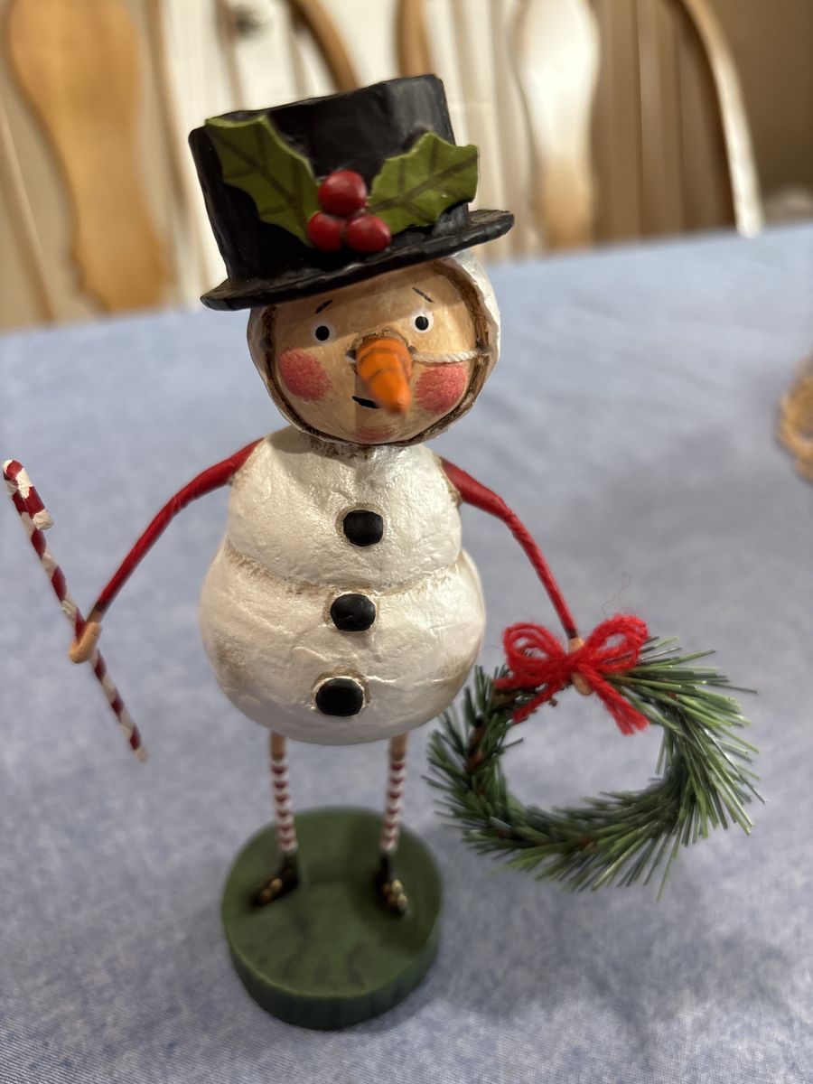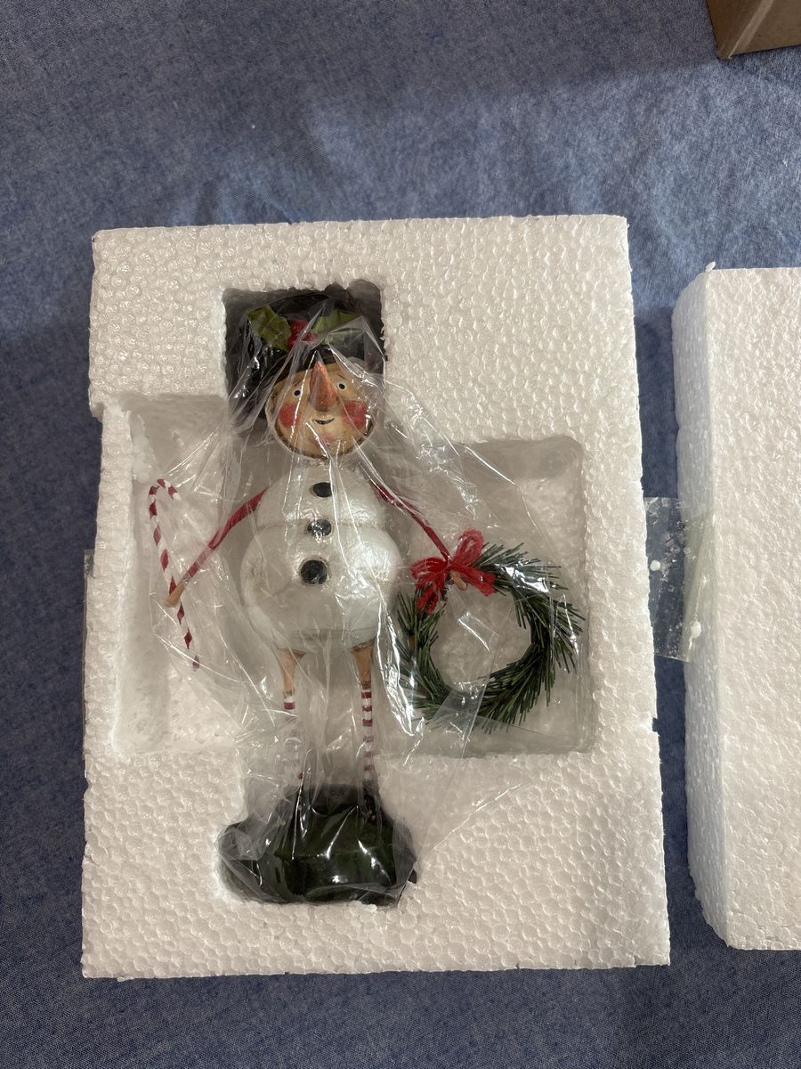 VenmoBrand new in box. Super cute snowman figurine from Lori Mitchell. Perfect condition except for one of the strings for carrot nose is missing. Doesn’t detract from look at all… hardly noticeable.