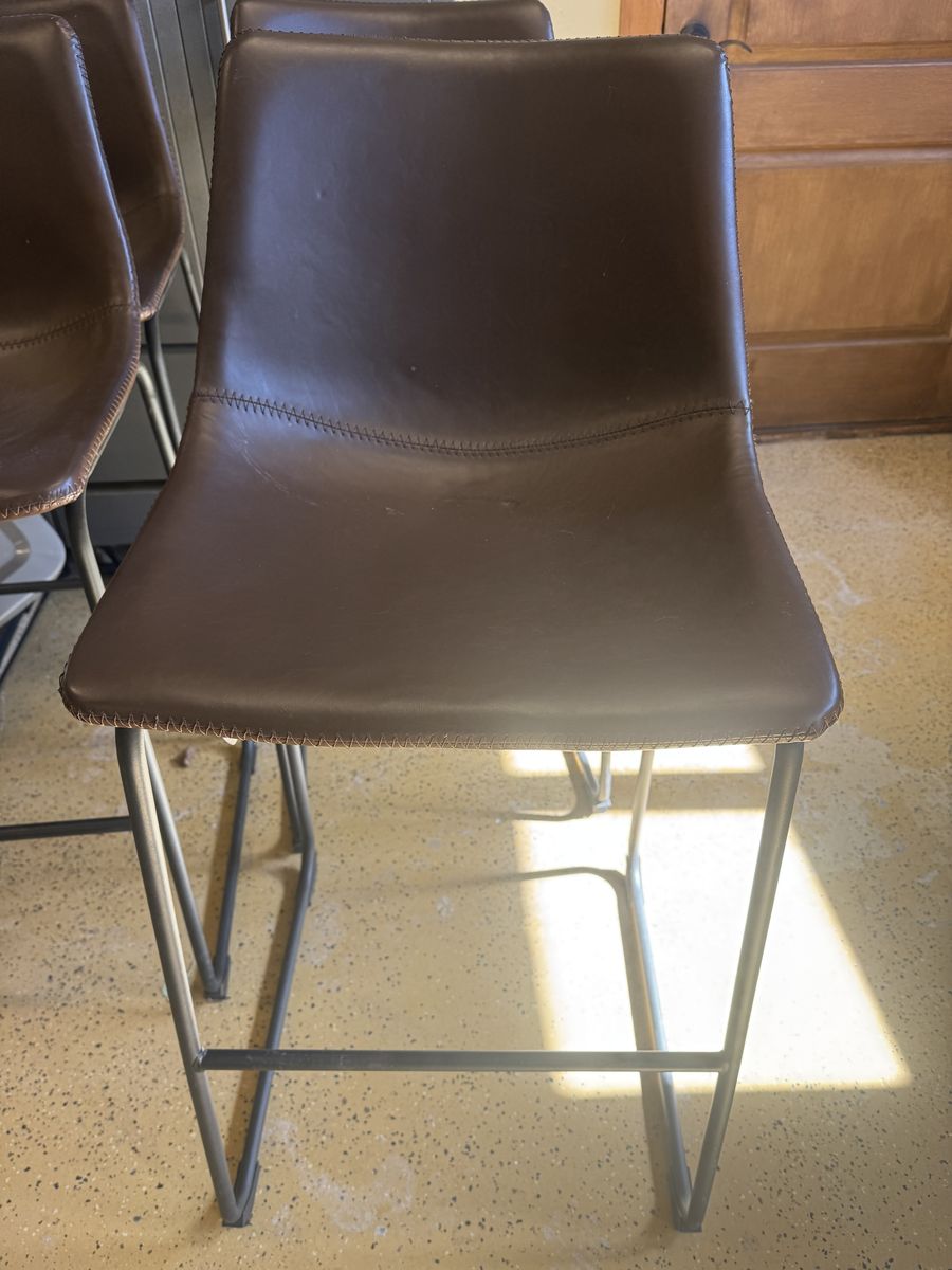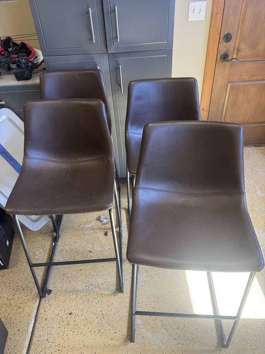 4 faux leather bar stools with backs. The seat is 28” tall. Asking 200$ for all 4.