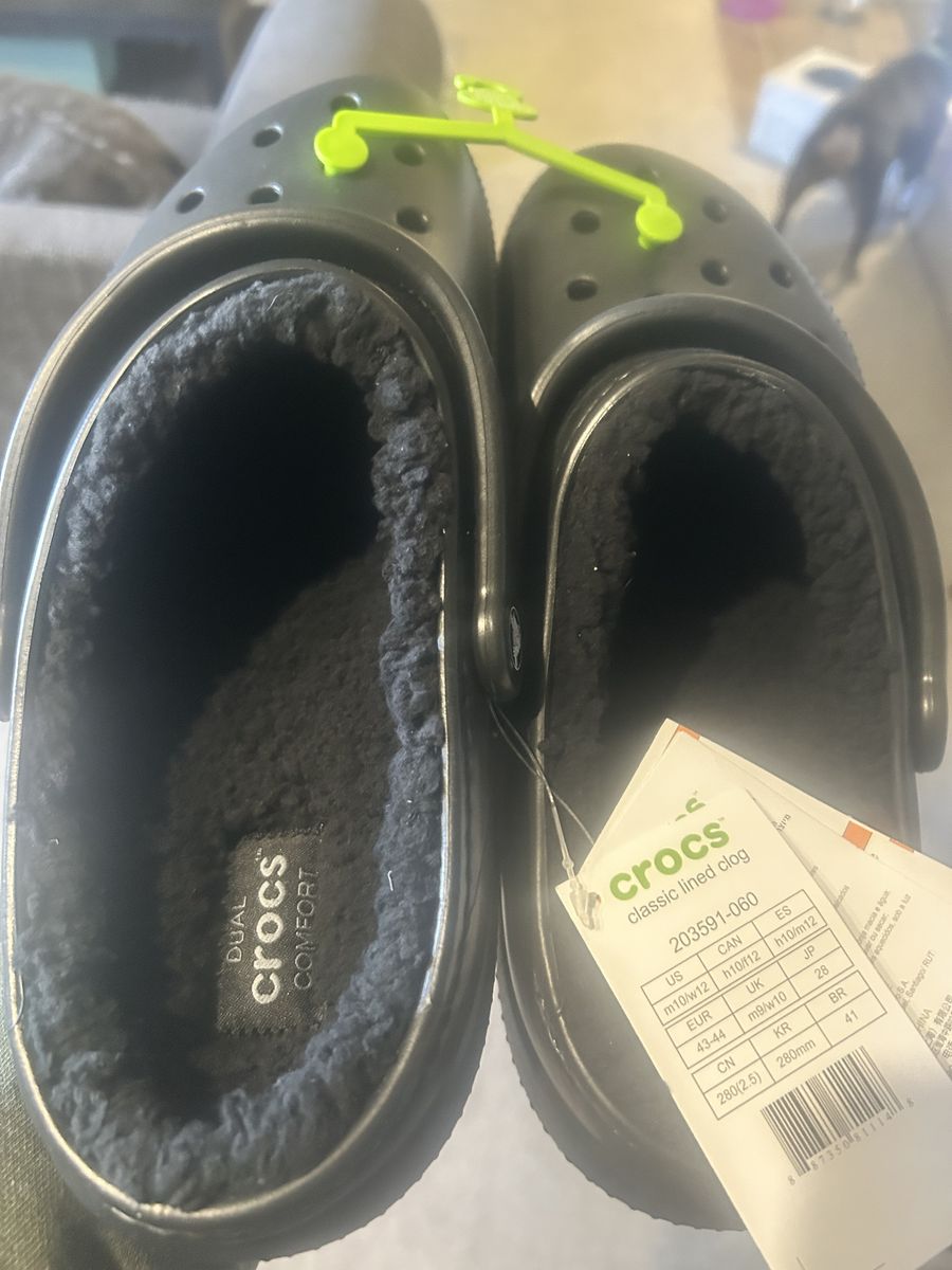PayPalnew with tags, men’s size 10 crocs with fleece lining.
