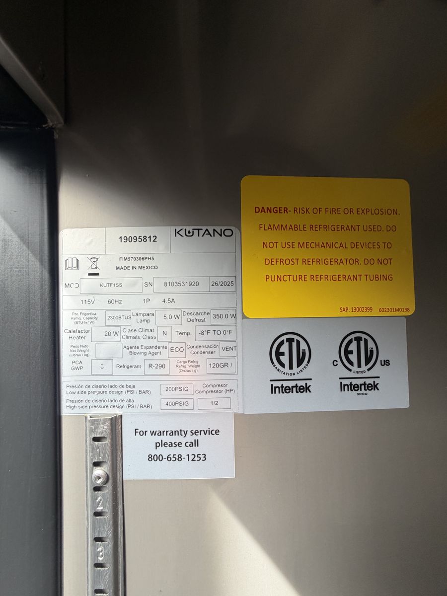 New scratch and dent Kutano 1 door reach in freezer. KUTF1SS pick up only.