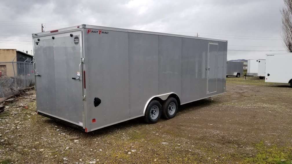 FASTTRAC DELUXE MODEL FT8524T3-D --------------------------INCLUDED UPGRADES---------------------- RV STYLE SIDE DOOR, 7 FOOT INTERIOR HEIGHT,REAR RAMP DOOR WITH 80IN OPENING HEIGHT AND 16IN RAMP EXTENSION 4 FOOT REAR BEAVERTAIL, TANDOM 5200# AXLES, 225/75 R 15D 8 PLY RADIAL TIRES,.030 ALUMINUM EXTERIOR, 5000# RECESSED D RING TIE DOWNS, PLEXCORE INTERIOR WALL LINER ((SUPERIOR TO PLYWOOD)),