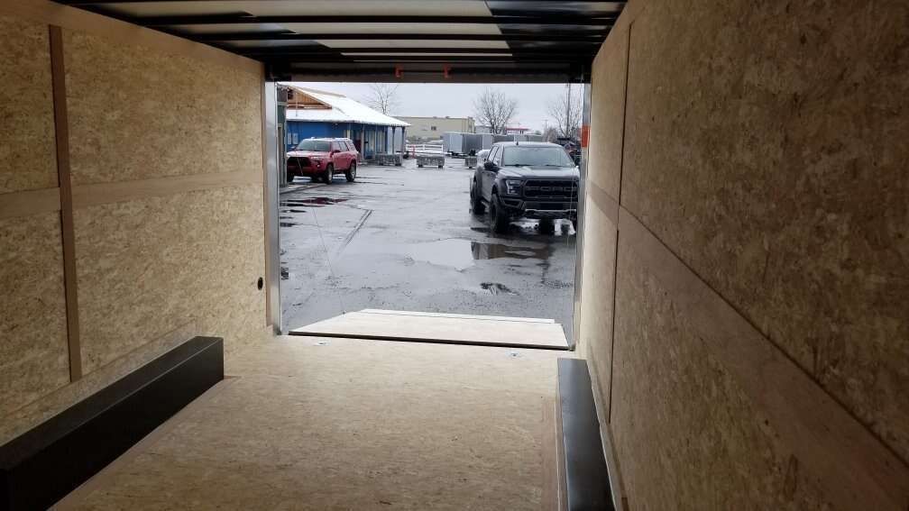 ------------------------------STANDARD FEATURES-----‐--------------- V FRONT,REAR RAMP DOOR WITH 16IN RAMP EXTENSION, LED LIGHTS, LED INTERIOR LIGHTS, BRAKES ON ALL WHEELS, RADIAL TIRES, 1 PIECE ALUMINUM ROOF, 3/4 INCH PLEXCORE DECKING, (( SUPERIOR TO PLYWOOD)) 3/8 INCH PLEXCORE INTERIOR WALL LINER,, COLOR SILVERFROST,