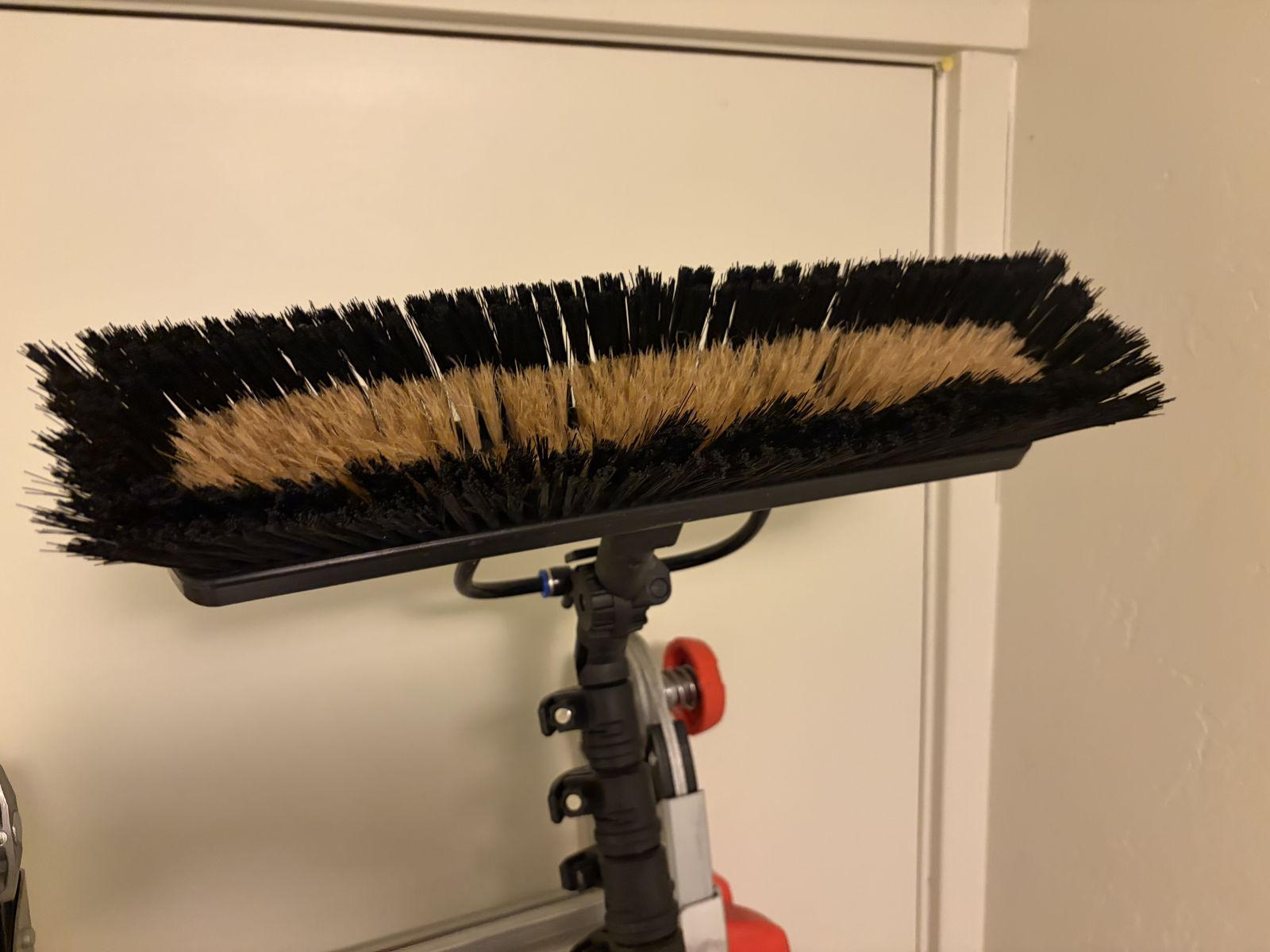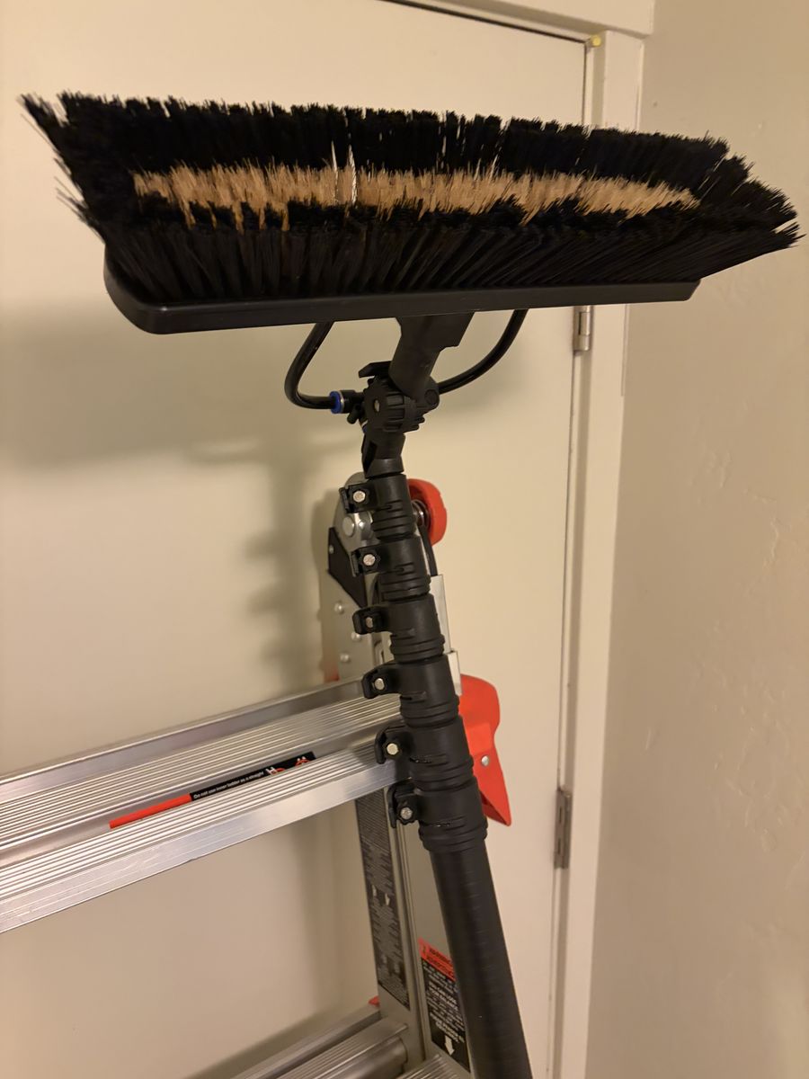 The pole extends up to 30 ft and is super lightweight with a hybrid brush!