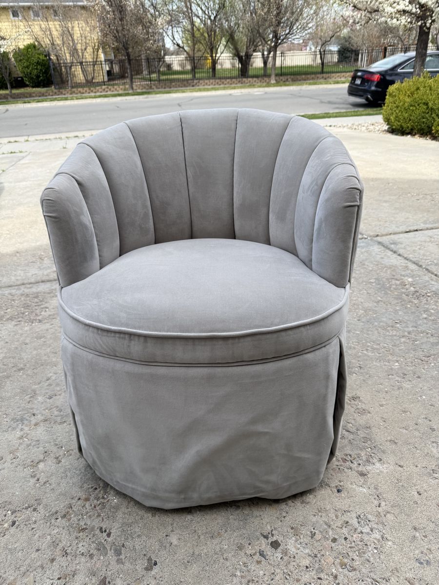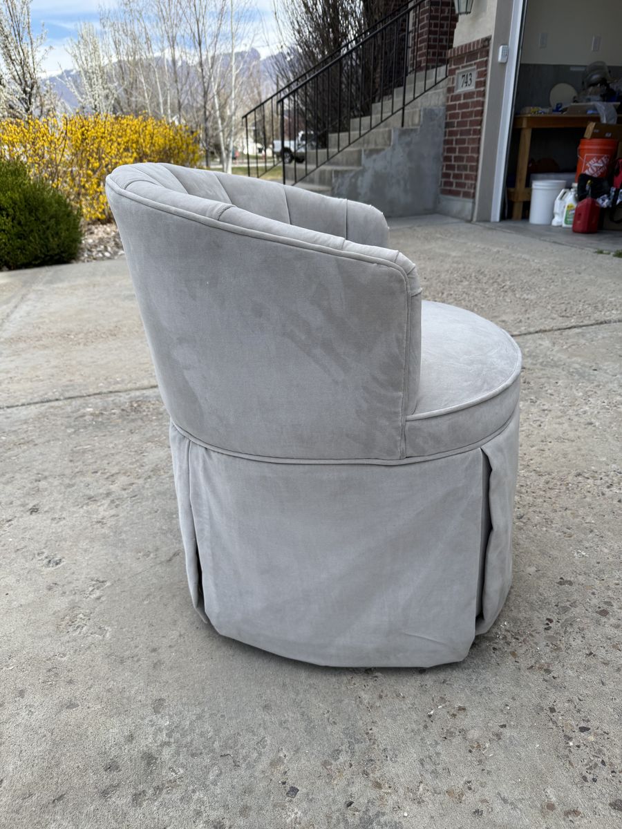 VenmoUpholstered vanity stool with pleats, gray, used like new