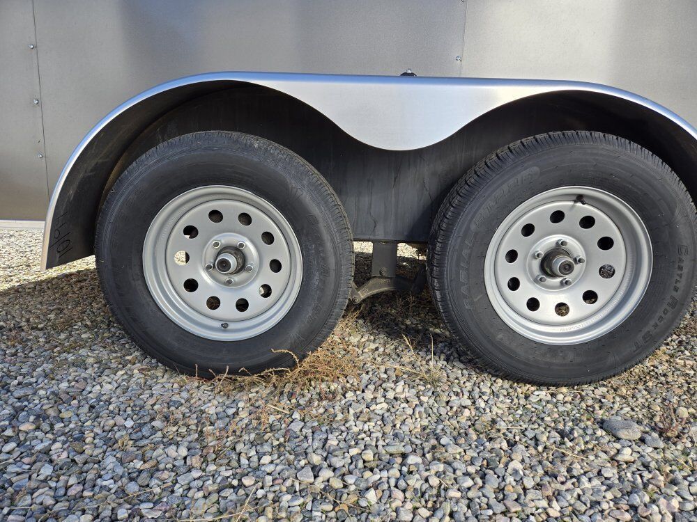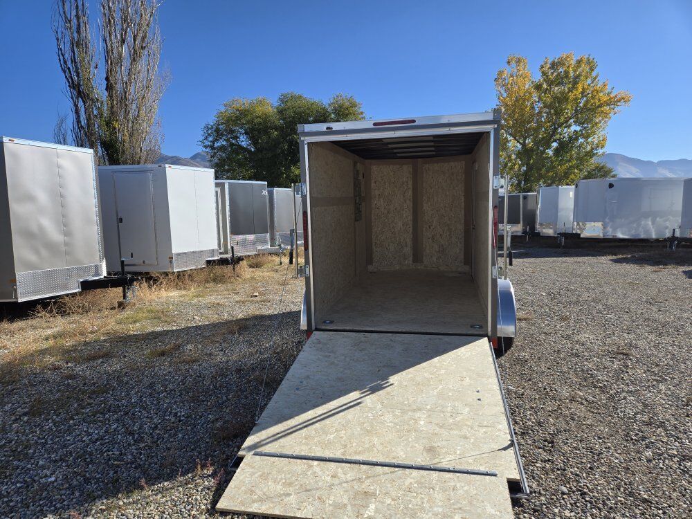FASTTRAC DELUXE MODEL FT712T2-D,7FT INTERIOR HEIGHT, V NOSE DESIGN, REAR RAMP DOOR WITH 16IN RAMP EXTENSION, SEMI-SCREWLESS ALUMINUM EXTERIOR (( .030 ALUMINUM )) 16IN ON CENTER FRAME ON WALL, 16IN ON CENTER FRAME ON CROSS MEMBERS, 1 PIECE ALUMINUM ROOF , UNDERCOATED CHASSIS, RV STYLE SIDE DOOR, TANDOM 3500# DEXTER AXLES, 7000# GVWR, EZ LUBE HUBS, 3/4 INCH PLEXCORE DECKING ((( SUPERIOR TO PLYWOOD ))) 3/8 INCH PLEXCORE INTERIOR WALL LINER,