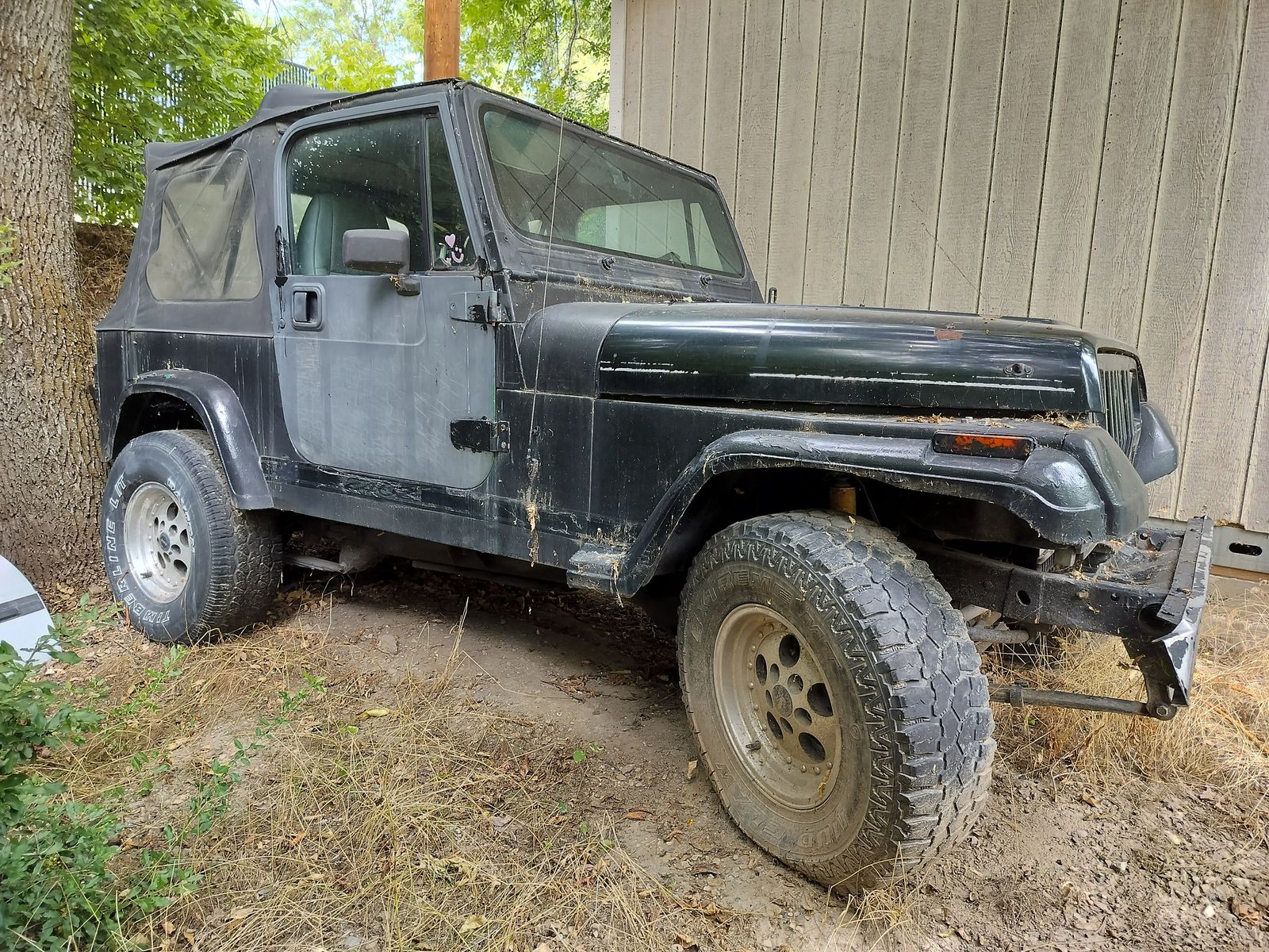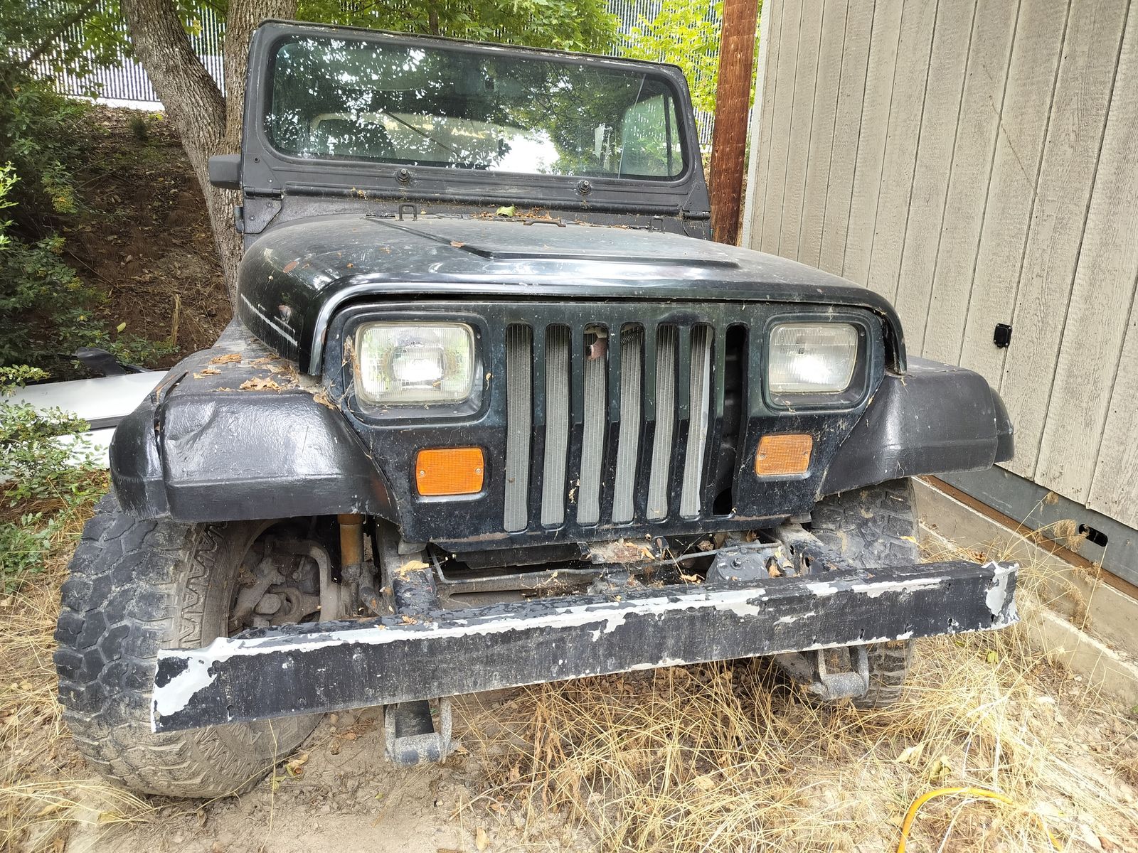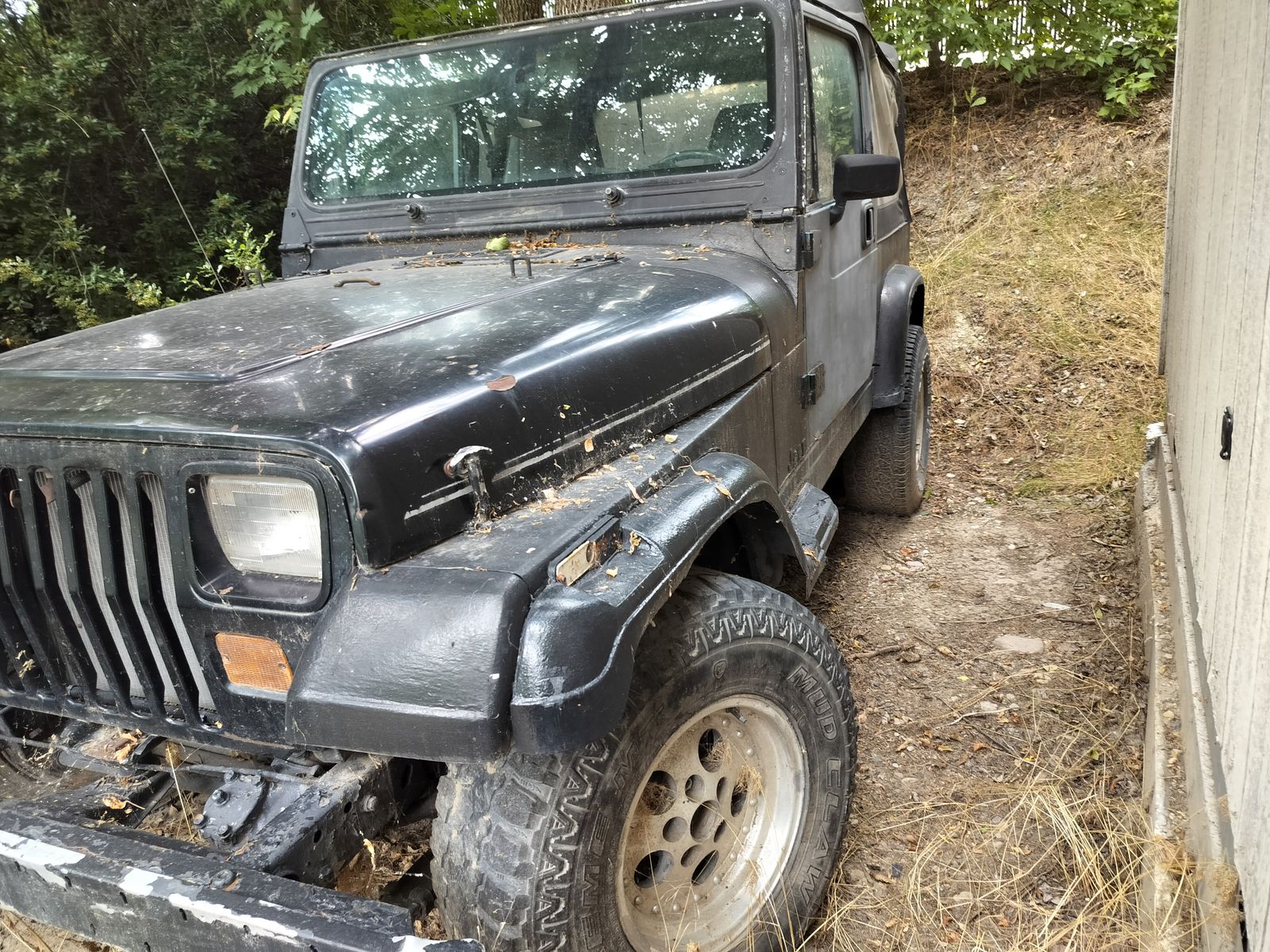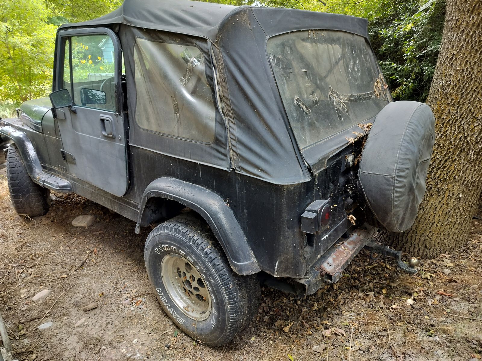 1989 Jeep Wrangler YJ 4-cylinder project. Bring a trailer. Could definitely become a nice rock crawler. Does try to start when you put gas down the carburetor directly.