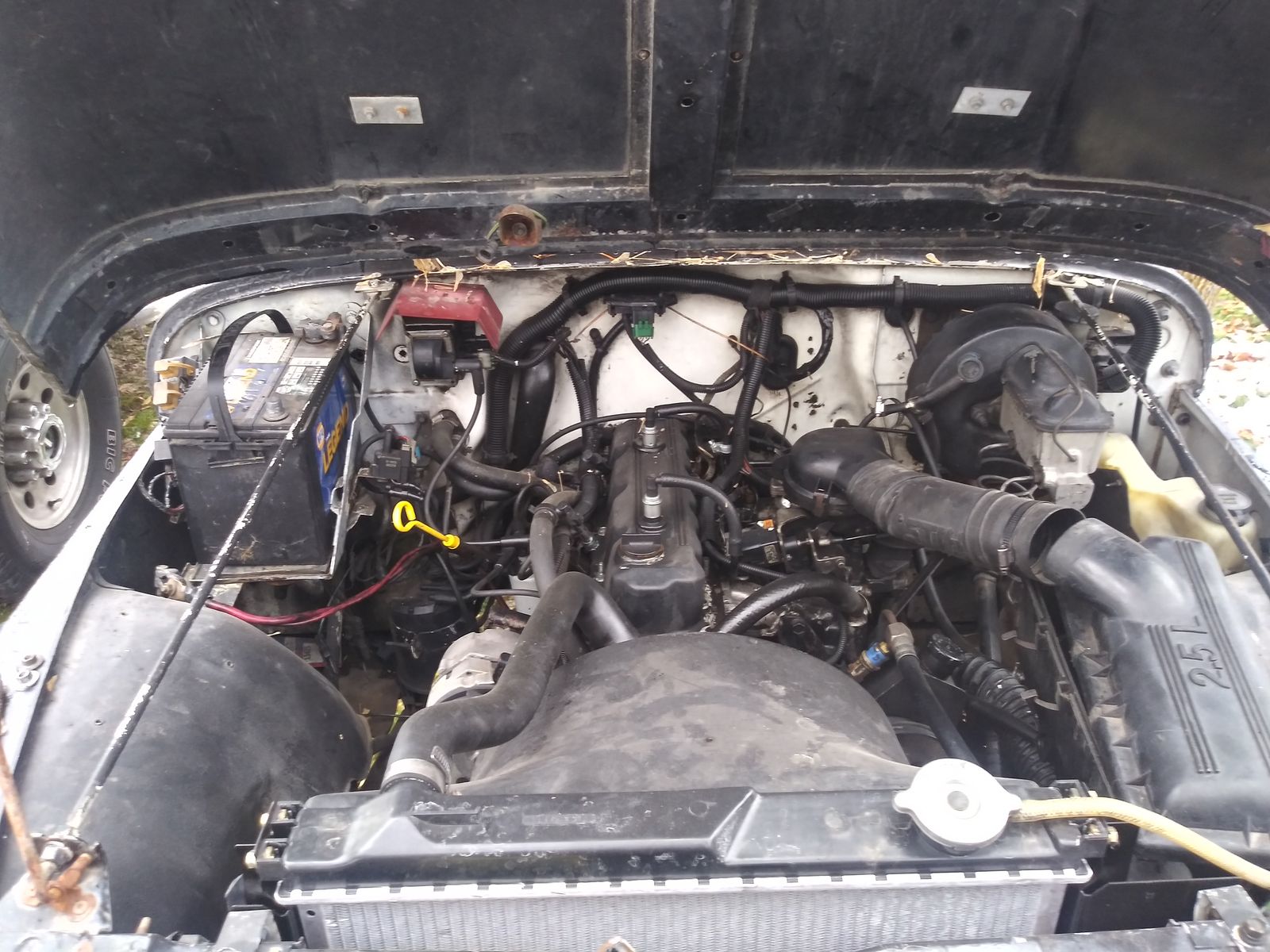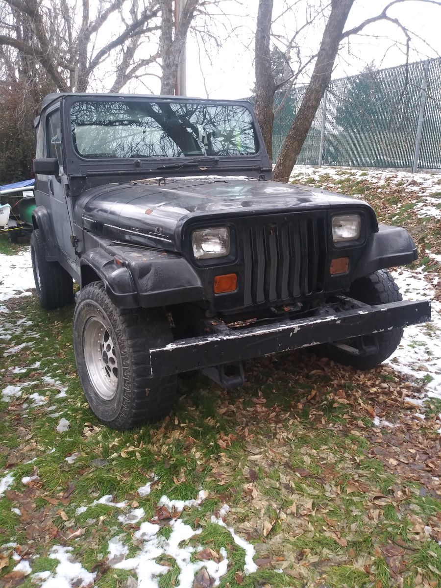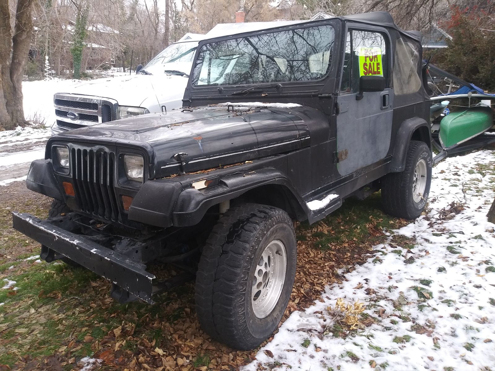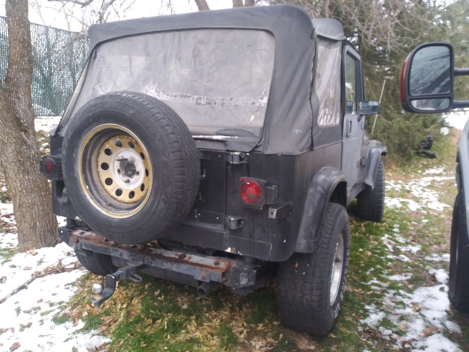 1989 Jeep Wrangler YJ 4-cylinder project. Bring a trailer. Could definitely become a nice rock crawler. Does try to start when you put gas down the carburetor directly.