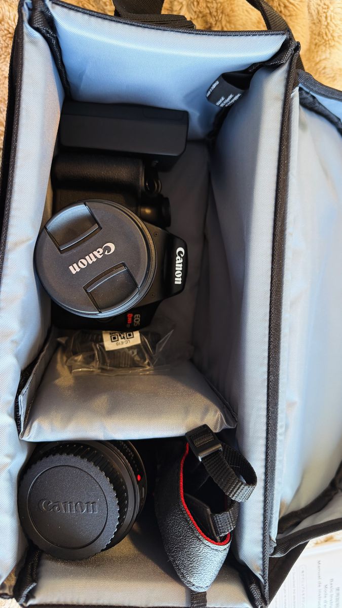 Selling my Canon EOS Rebel T7 DSLR camera bundle in like new condition. Got it as a gift, and never ended up using it—so it’s basically brand new.