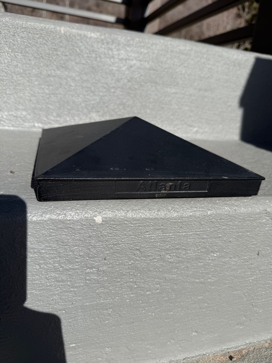 8" x 8" square pyramid, solid aluminum post caps. Atlanta brand. Black screws included. Can be seen in North Salt Lake.