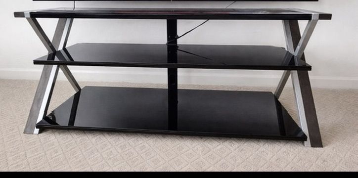 ApplePaySleek and sturdy TV stand with a clean, simple look. Fits a large TV and has great storage space underneath (perfect for consoles, soundbars, etc.)
