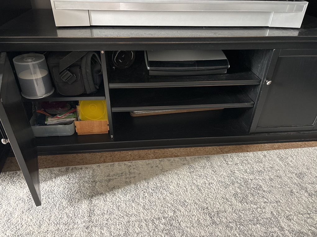 PayPalPottery Barn Media Center Paid $2200 110” wide x 75.5” high Tv space 62” x 38.5” Pull out Drawers for DVDs. Fantastic condition. Black ***** willing to deliver in SLC, Ogden, Provo area!!!!!