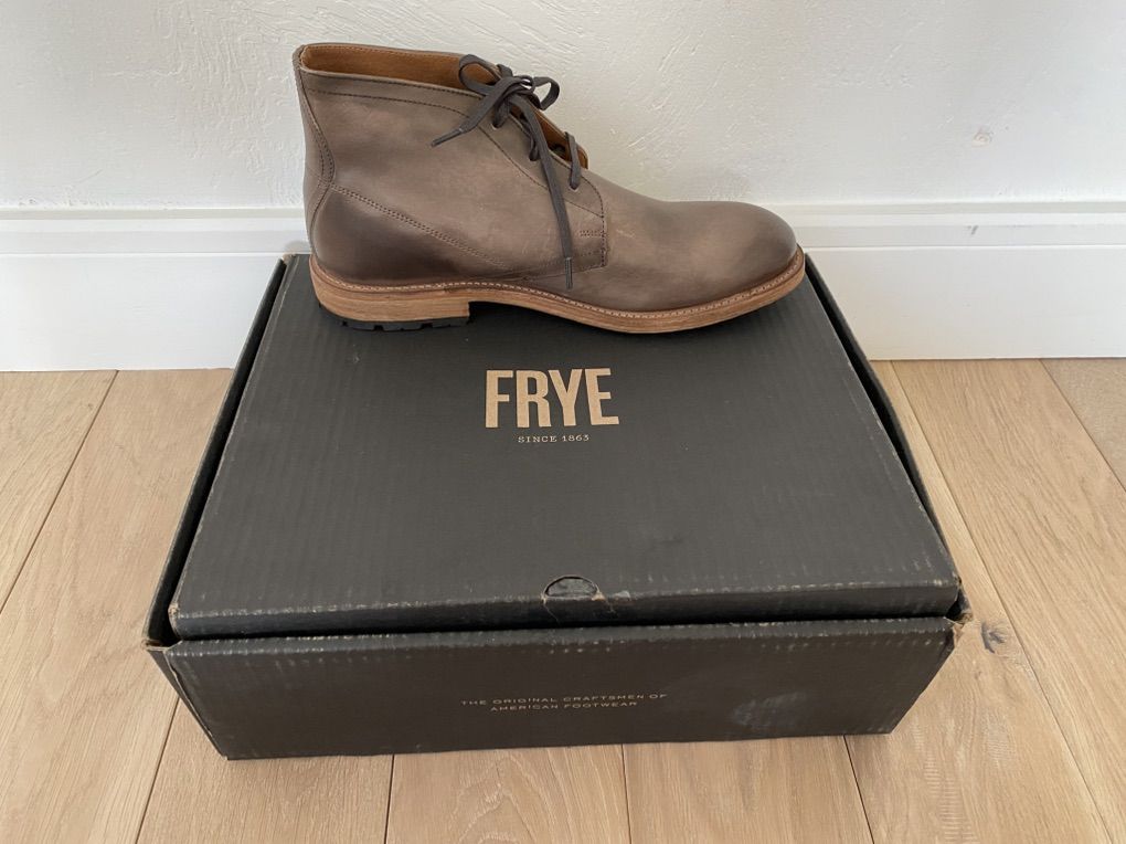 Brand new, never worn Frye Mens Bowery Chukka Leather Boots Color: Stone Size: 9 Location - Kimball Junction