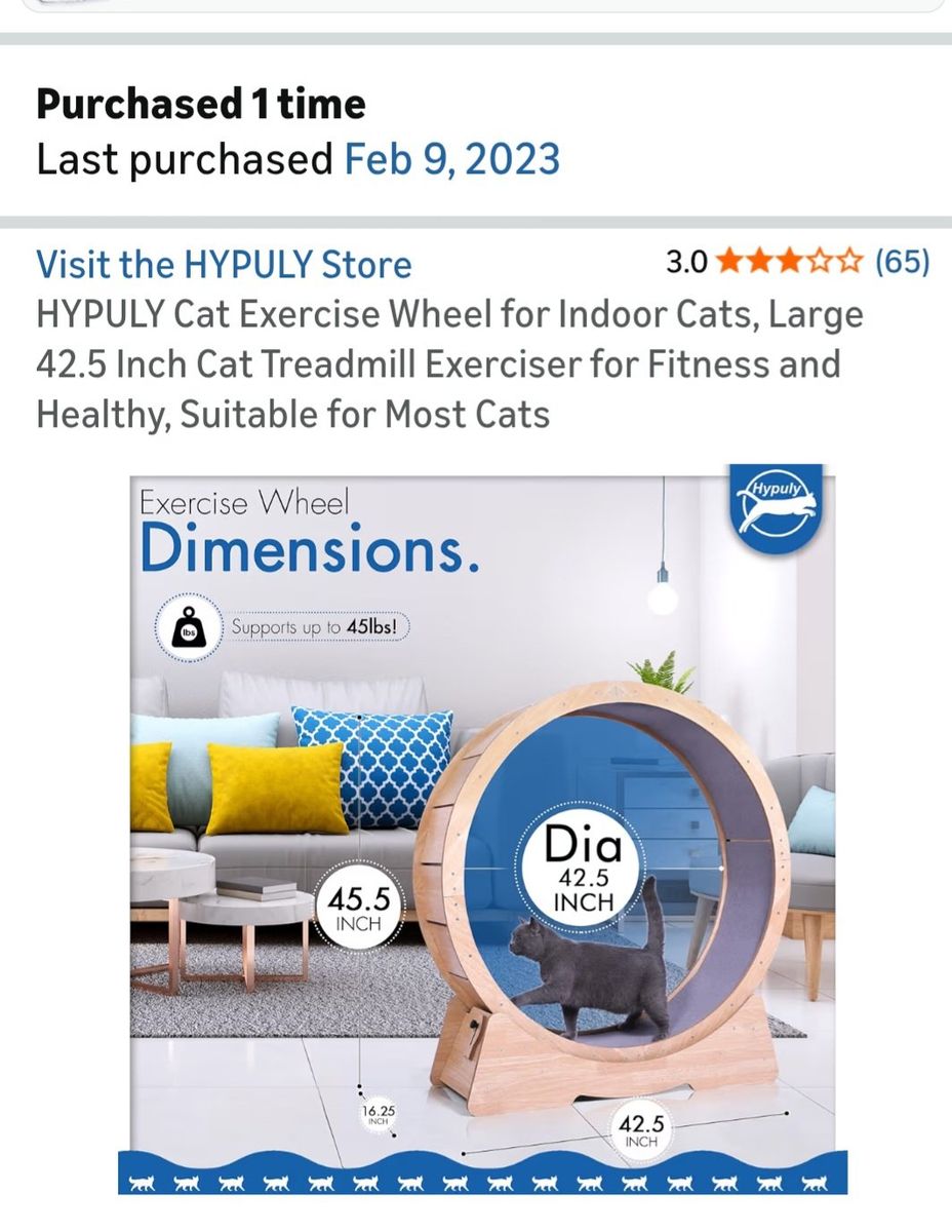 VenmoOriginal cost: $250. Cat treadmill exercise and play wheel. Large 42.5 inch.