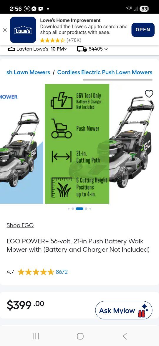 GooglePayEGO Power+ 56V 21-inch Cordless Lawn Mower LM2100 AND Battery & Charger!!!!