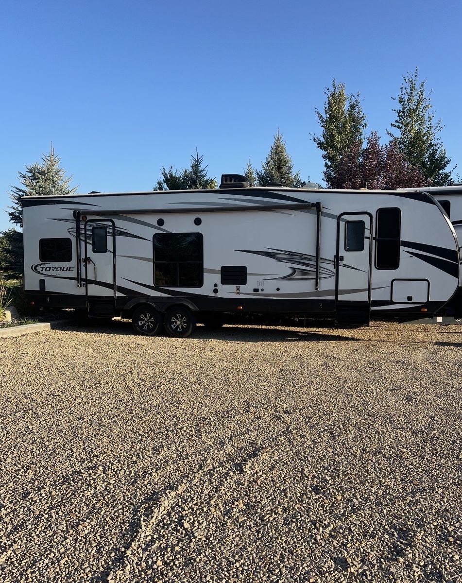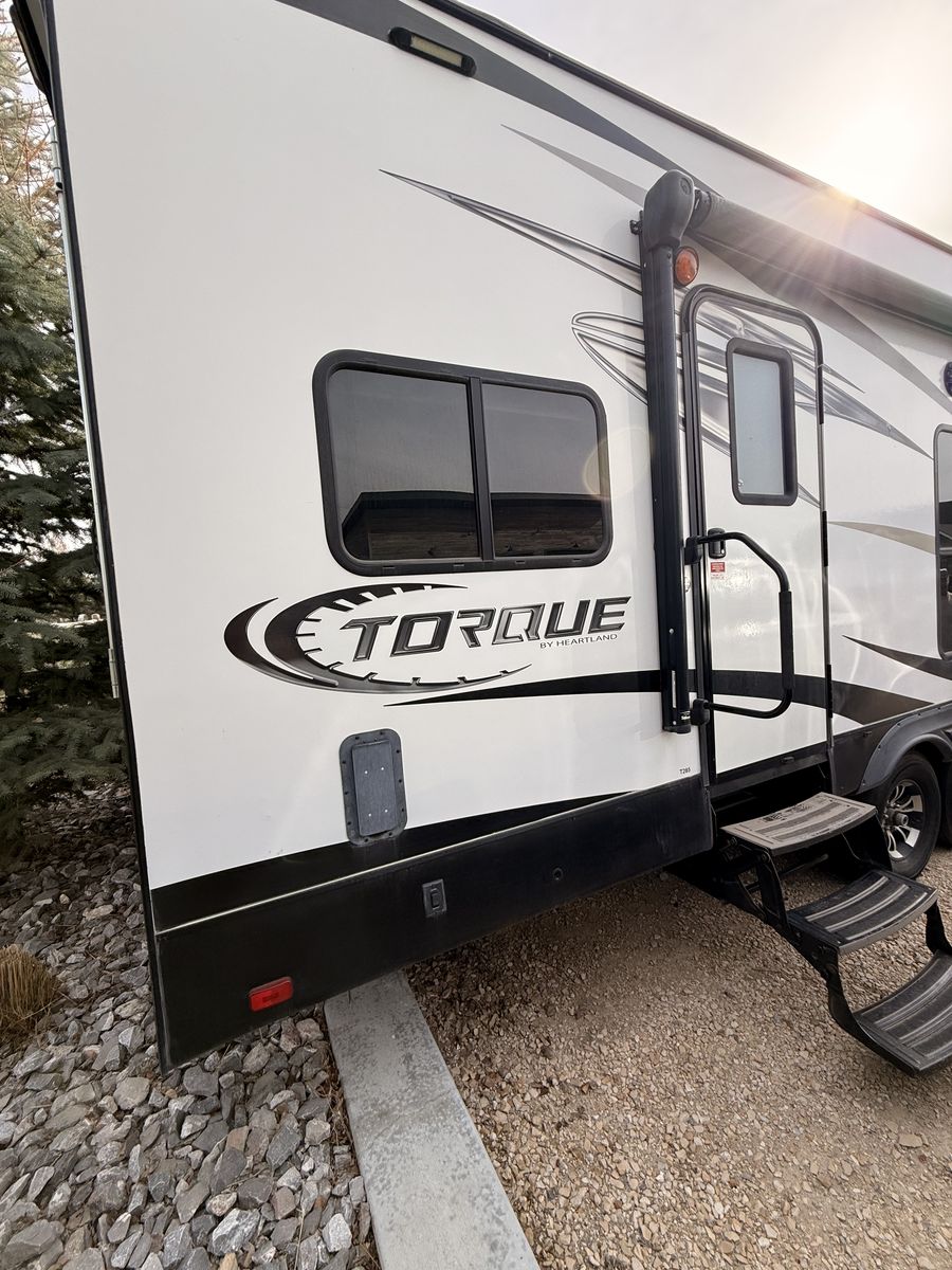 Very Well-maintained 2018 Heartland Torque T285 bumper pull toy hauler with a spacious 16’ garage. This trailer has been extremely well taken care of and is in great condition.