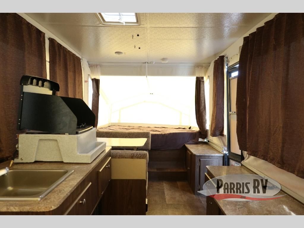Lightweight and easy-to-tow pop-up camper that’s perfect for weekend trips or family camping. Folds down small for towing and storage, but opens up to a surprisingly roomy layout with two large beds and a dinette that converts to additional sleeping space.