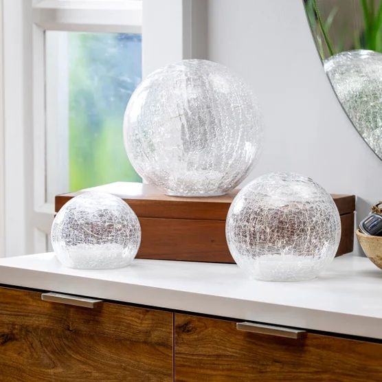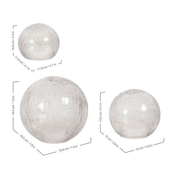 Add some dazzle to your home! These Evergreen LED Glass Spheres have a unique and stylish crackle pattern that compliments any home décor space. The Spheres have a clear crackle finish, these create a nice warm nighttime glow.