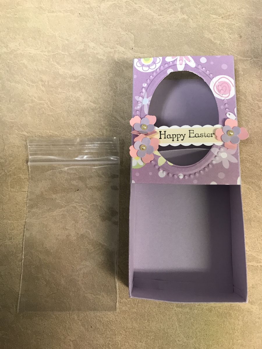 Price is more if purchased with Candy Filled Box. Happy Easter Match Box with Clear Plastic Window. Choose Your Colors, Handmade. Comes with a clear Plastic bag for Jelly Beans or other Candy. Boxes pictured have 4 Hershey's Nuggets or 6 Lemon Covered Almonds. Purchase With or Without Candy. Not much time left before Easter. $3.00 each for empty Boxes. $5.00 for Candy Filled Boxes.
