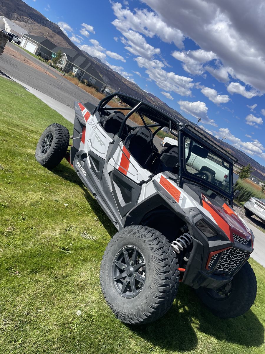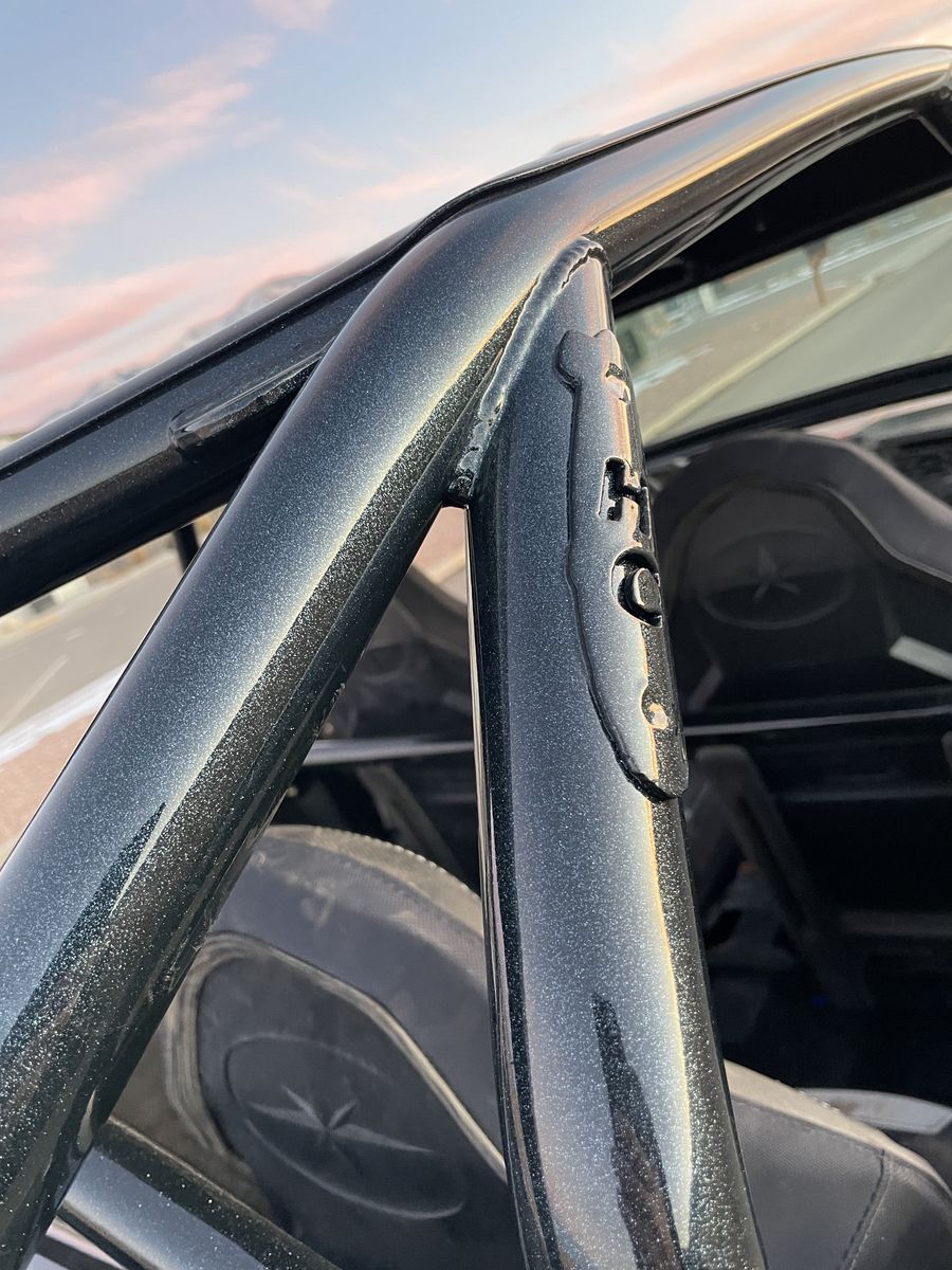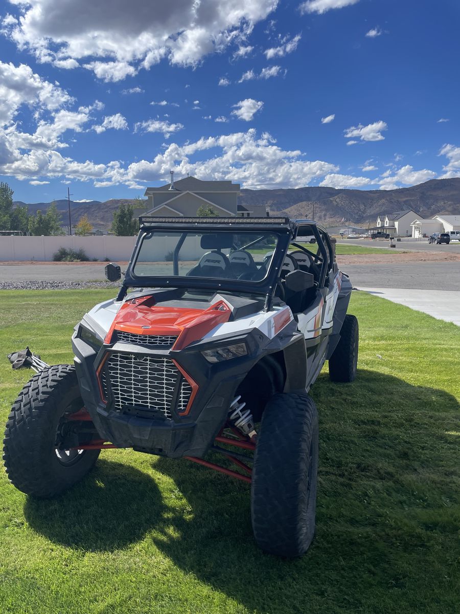 Hindenburg cage in tuxedo black PRP harnesses Light bar Assault mirrors MP door speakers Revolution Off-road exhaust Aftermarket blow off valve Tusk dual LED whip lights