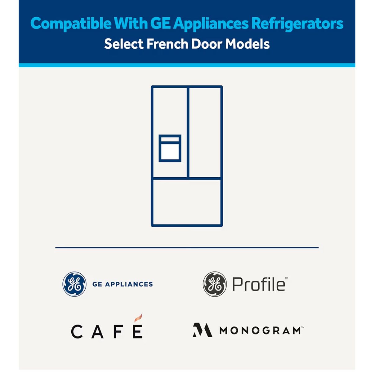 Compatible with select GE Appliances French door refrigerators, including GE, GE Profile, Café, and Monogram models.