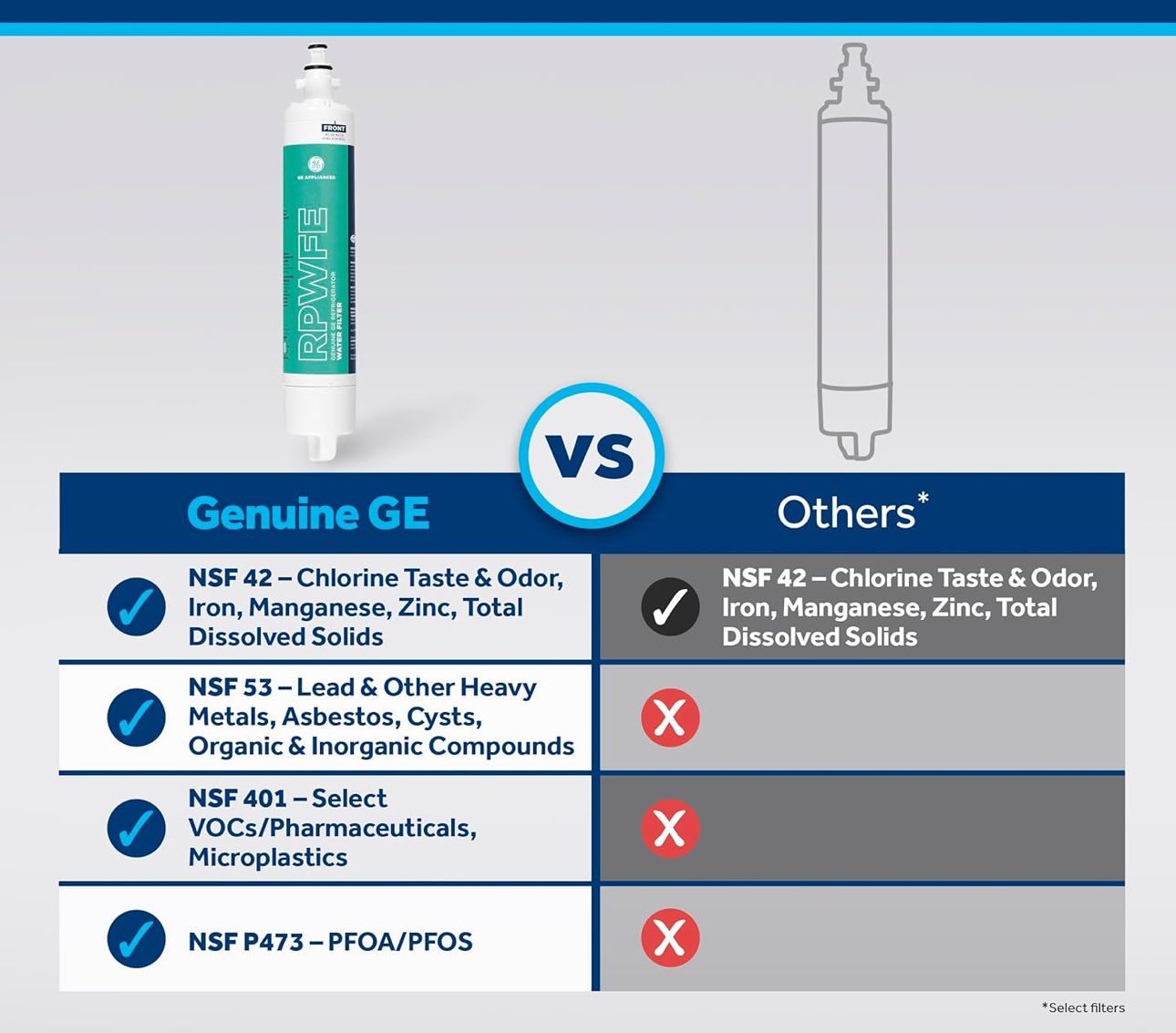 These are authentic replacement filters designed to deliver clean, fresh-tasting water by reducing lead, sulfur, and 50+ other impurities.