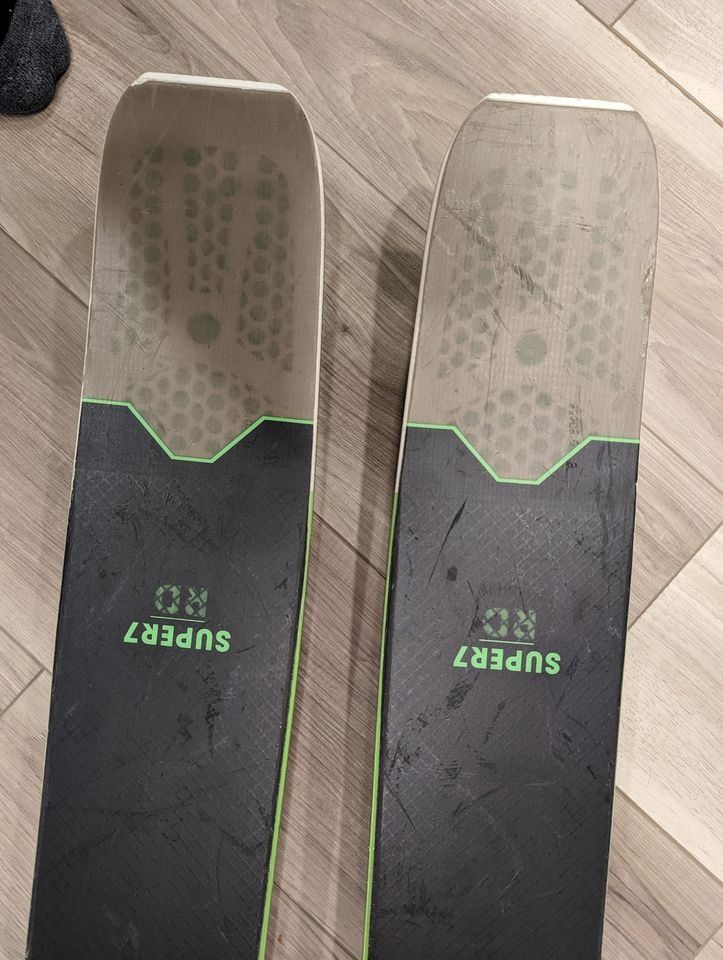 Great condition, some wear on the top sheet, nothing too deep. Bottoms are in excellent condition. These skis are amazing, super fun, directional but also very poppy. Just too long for me, so giving them up. They have been skied a total of 12 days.