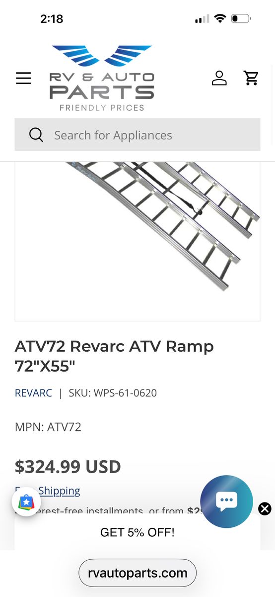 VenmoATV72 Revarc ATV Ramp 72"55", aluminum.