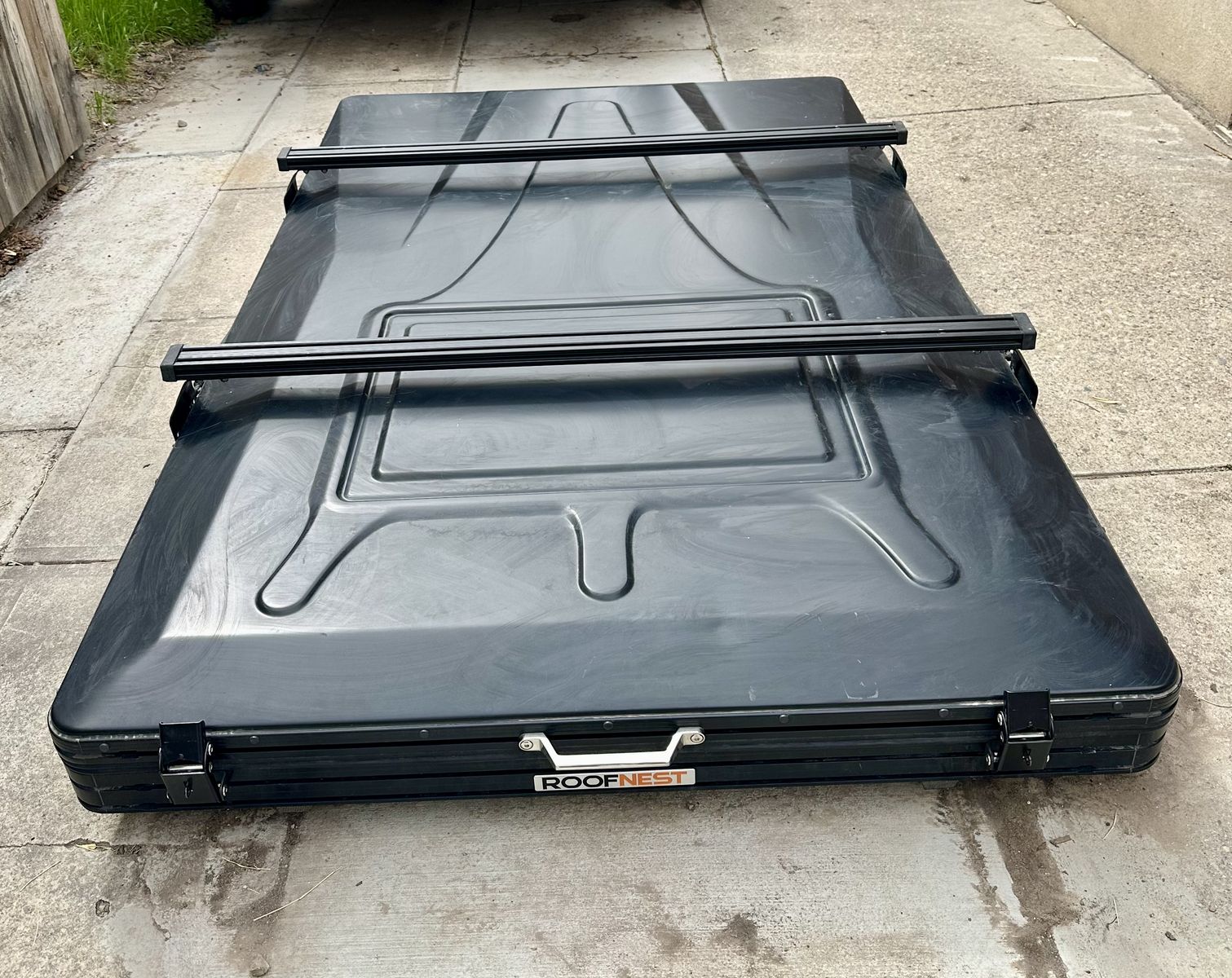 The RoofNest is in “as new” condition and in addition to the features listed below, a collapsible pop-up privacy shower and an extra set of 60-inch-wide cross bars are included. We purchased the wider cross bars so we could mount two kayaks. This is a great deal. Please email or text if you are interested. Key Features • Material: Stamped, 6-series aluminum hard shell • Mounting Hardware • Interior dimensions: 81” L x 52” W • Exterior dimensions: 83.5” L x 54” W • Sleeping Capacity: 2 adults • Interior dimensions: 81” L x 52” W • Height when closed: 8” • Double accessory channel system - Crossbar system (50” included) • Mount additional gear using M8 bolts (up to 150 lbs when tent is closed, up to 75 lbs when tent is open) • Memory foam mattress - 2.5” true memory foam • Skyview window, 8.5' ladder, anti-condensation mat, sand-free mat, dual detachable multi-functional pockets (great for storing shoes) • Gear Grid and LED light strips inside the tent • Weight: 180 lbs