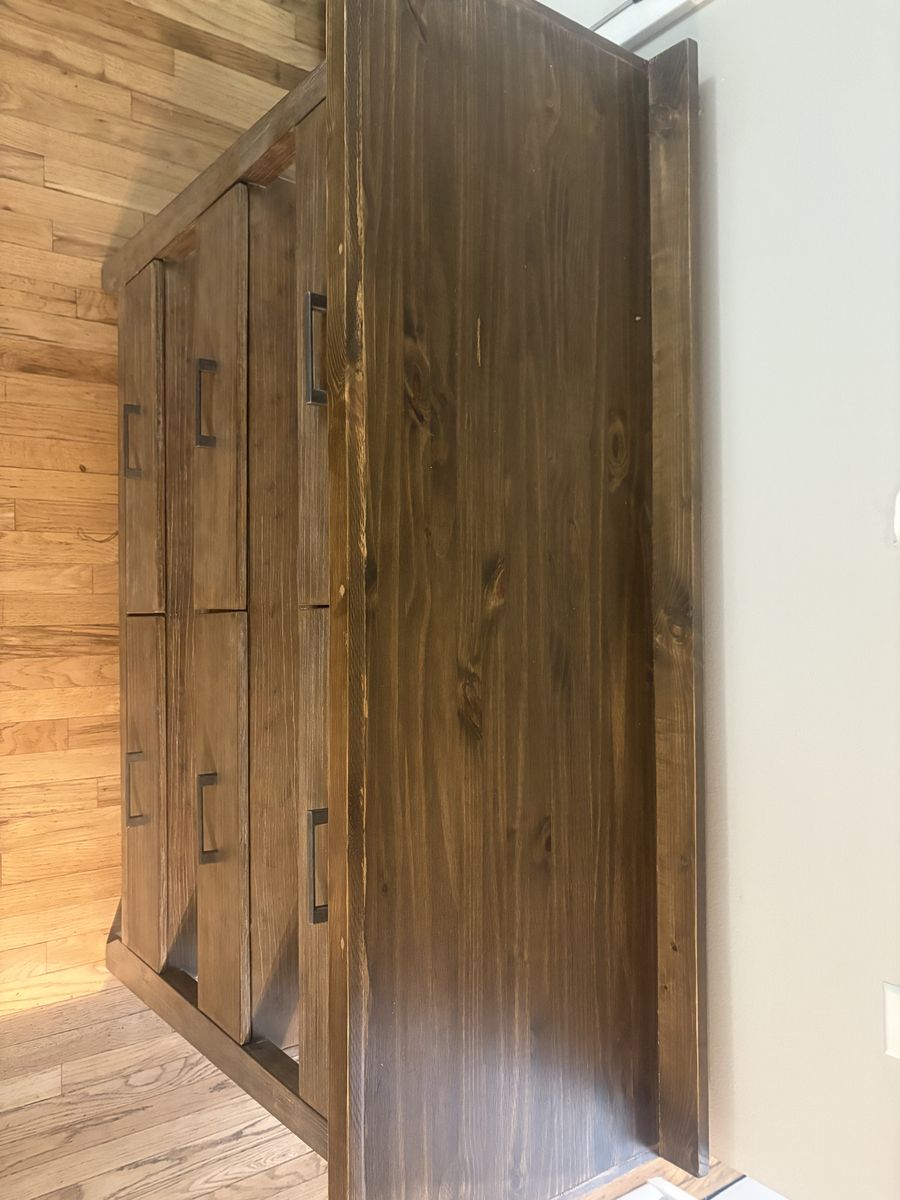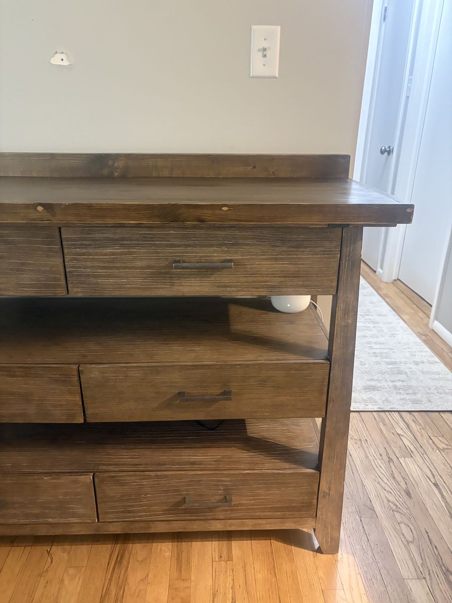 VenmoBarley used, has 6 pull out drawers and two levels of open space. Width- 55 3/8 inches Length 39 1-4 inches Depth 19 inches Willing to negotiate