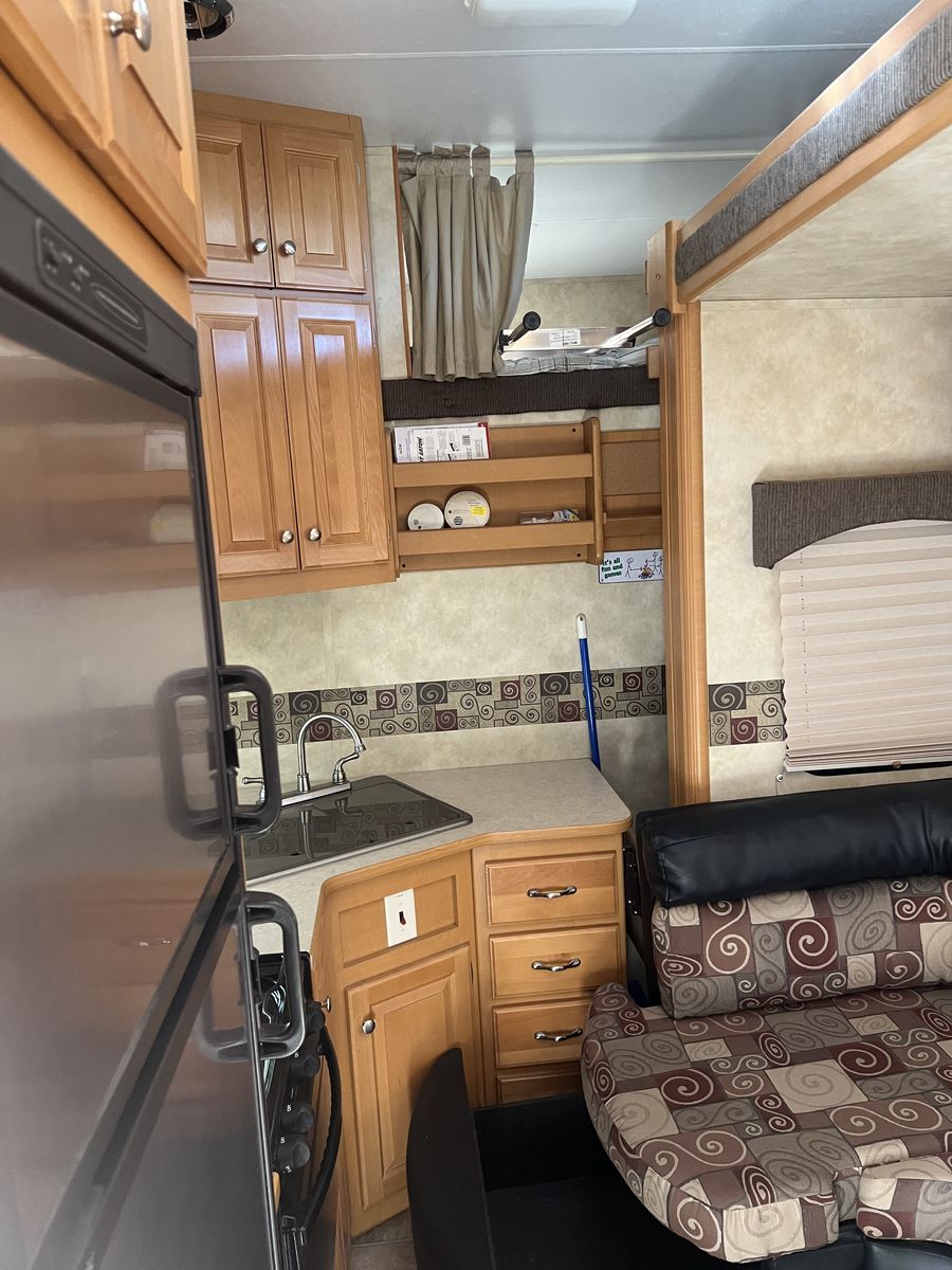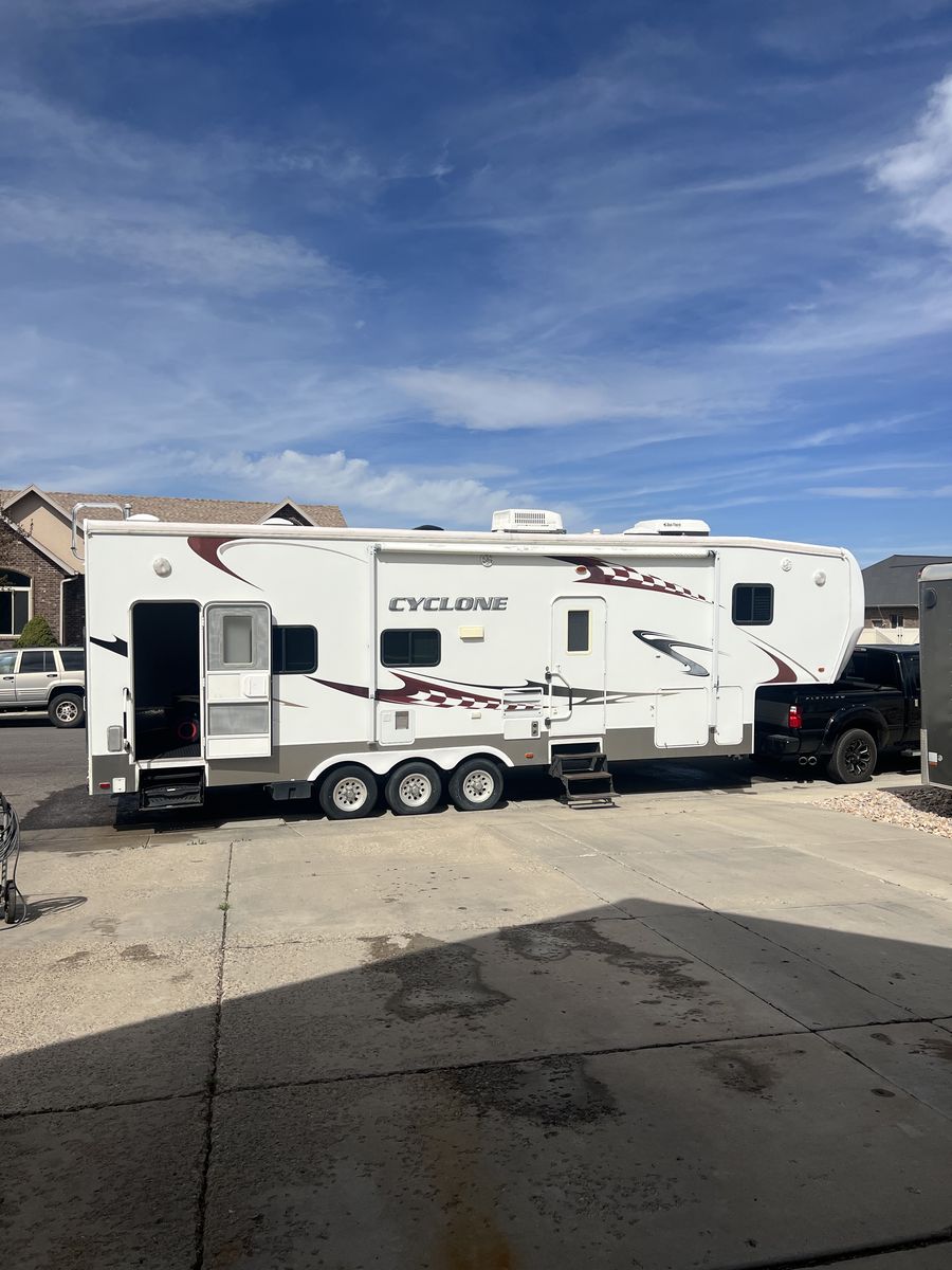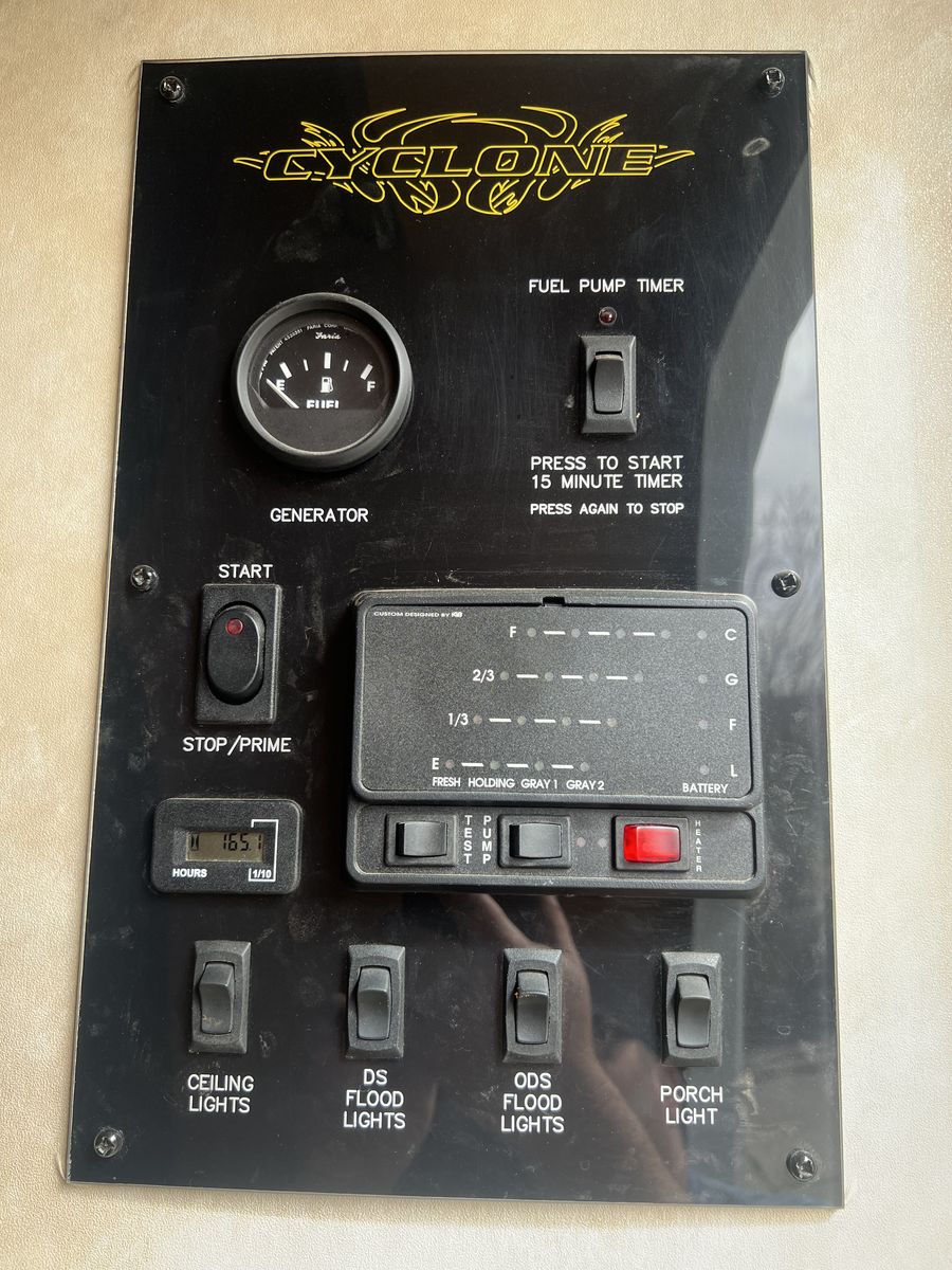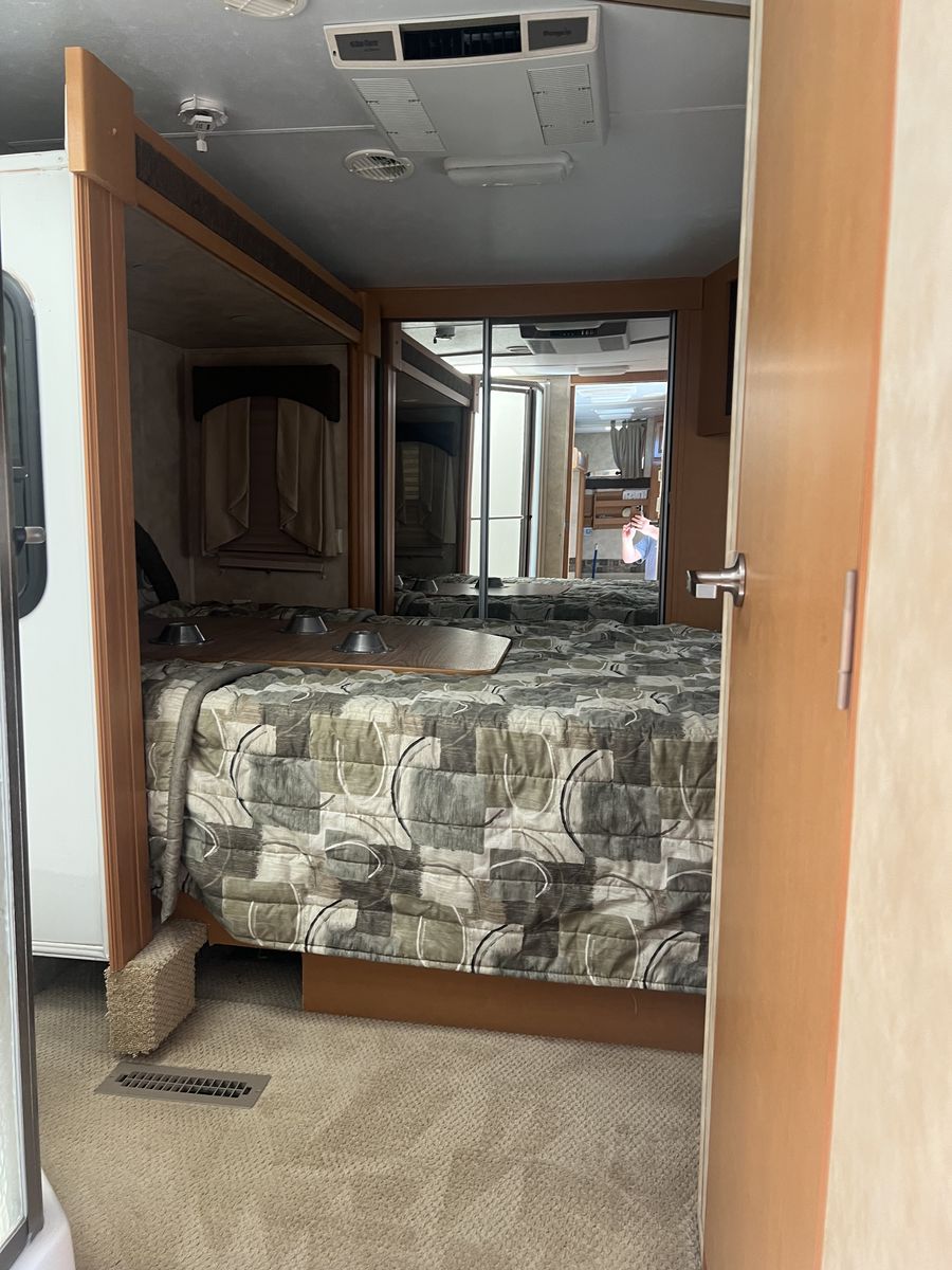 3210 model with separate garage. Has electric bunks in the back with sleeping loft. Onan 5500 generator with 165 hours.