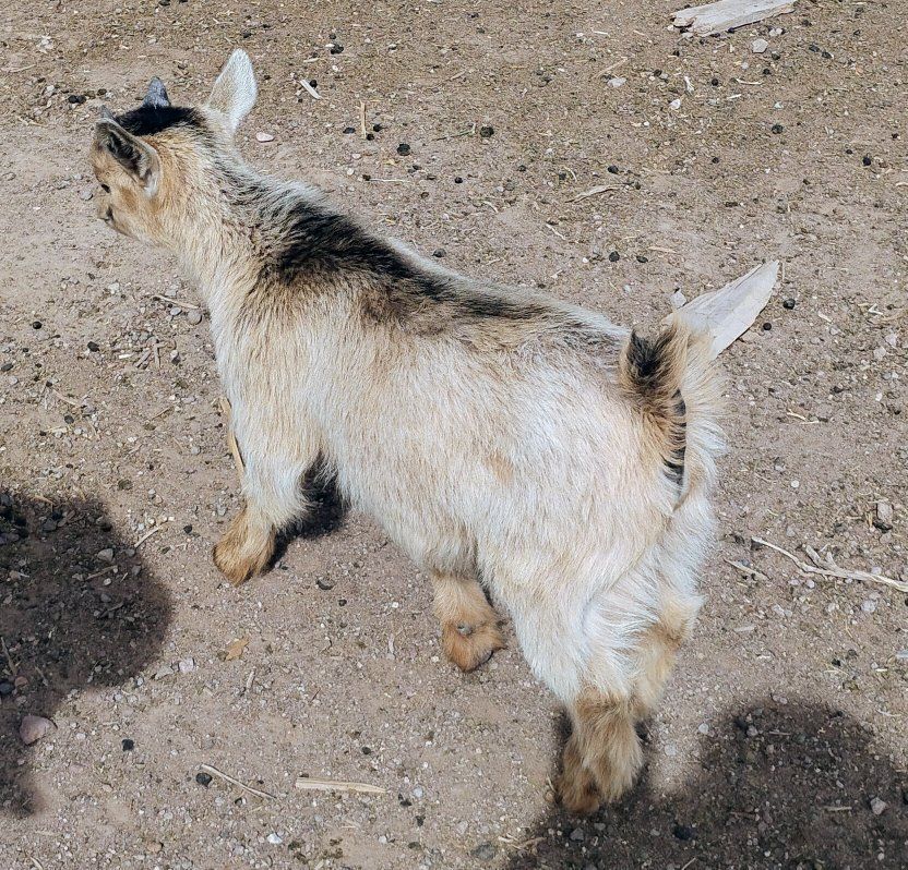 ¾ Nigerian Dwarf x ¼ Pygmy. 8 weeks as of March 23rd. Intact. I'll band him at 16 weeks.