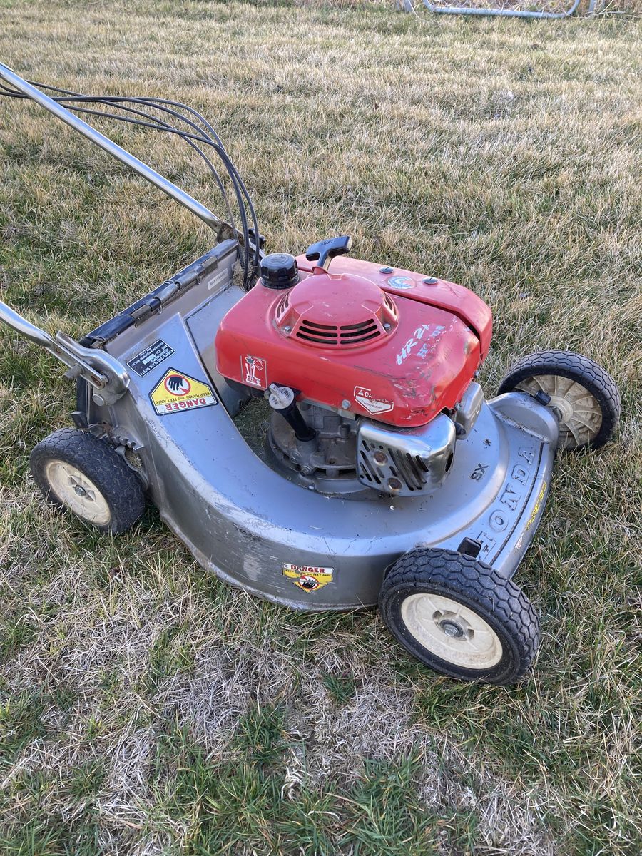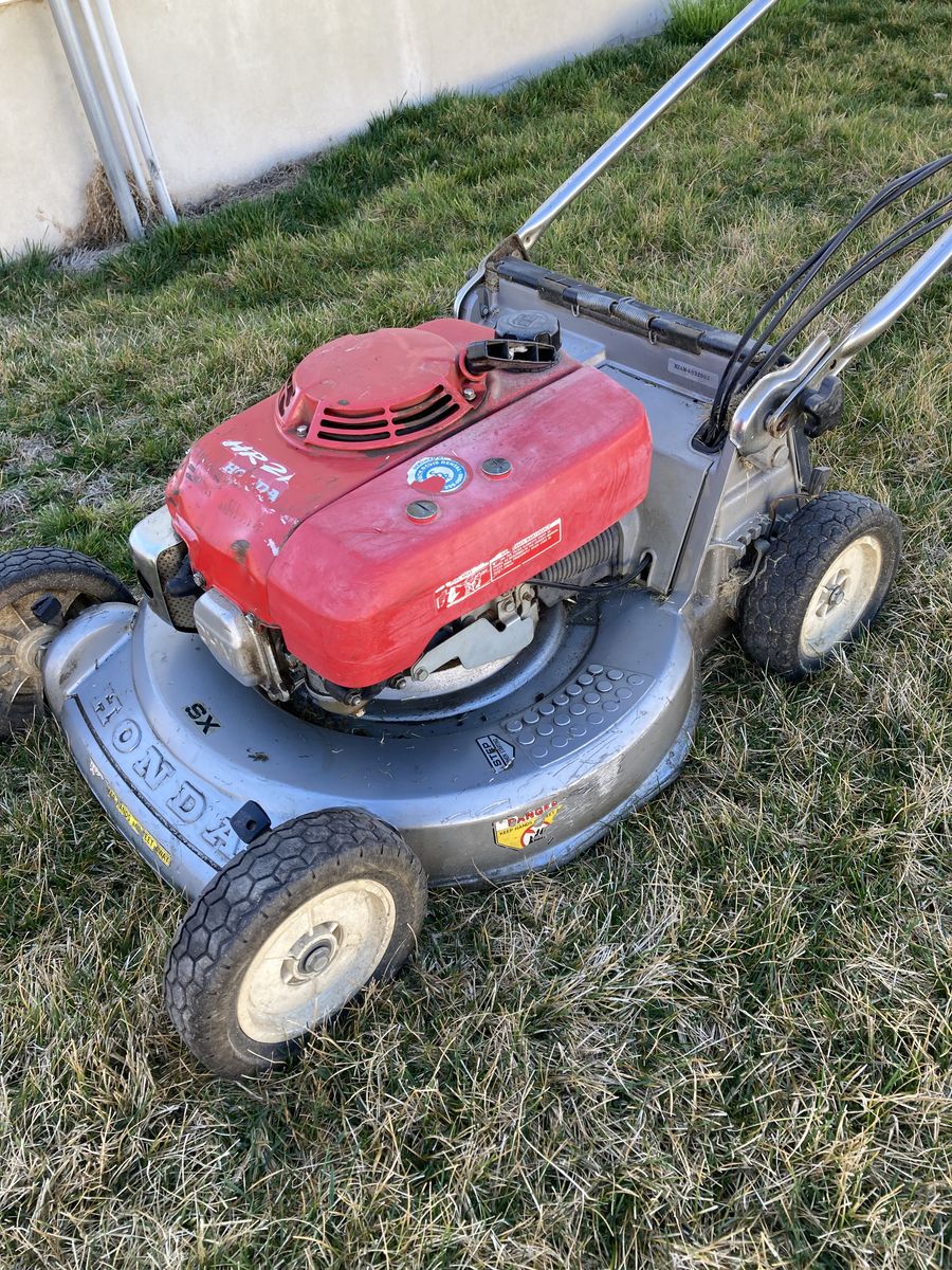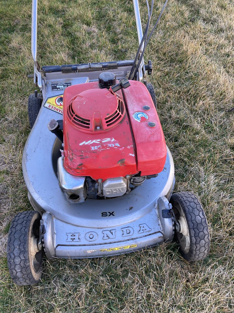 Honda HR215 for parts or repair. It has compression. It has sat for a few years. No bag. $100 dollars