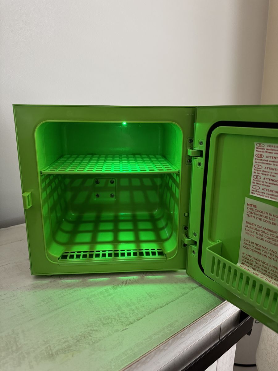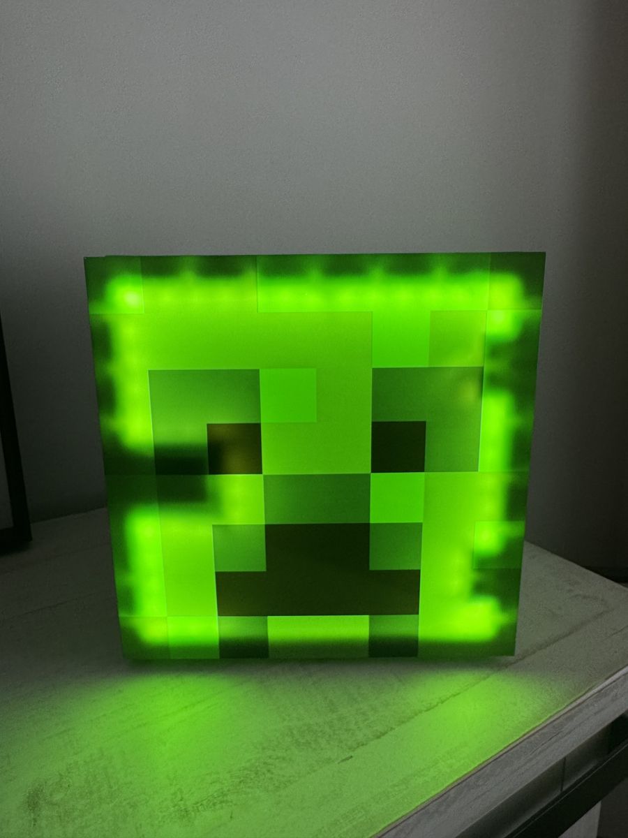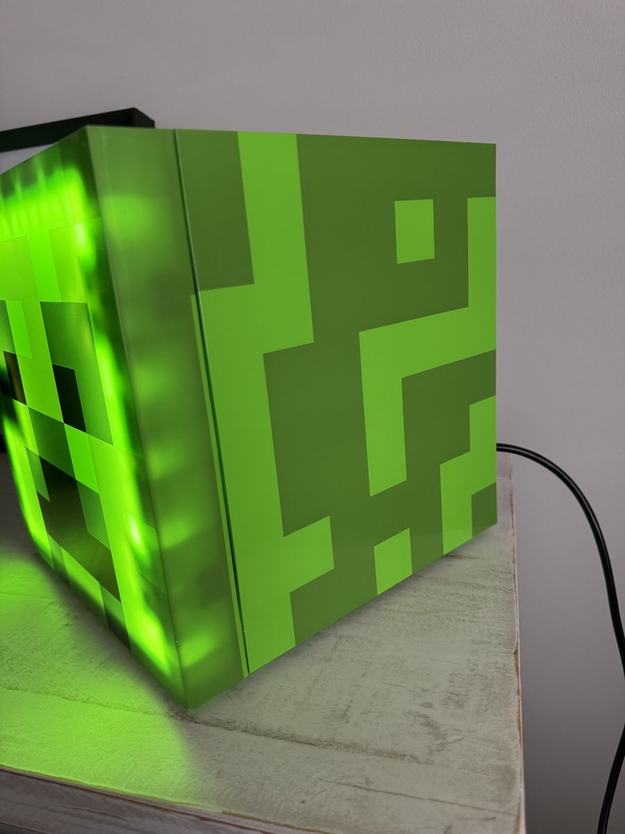 Minecraft Green Creeper 9 Can Mini Fridge 6.7L 1 Door Ambient Lighting 10.4 in H 10 in W 10 in D. So cute! Uses a couple times for sleepovers. Text Heather 801.652.4930.