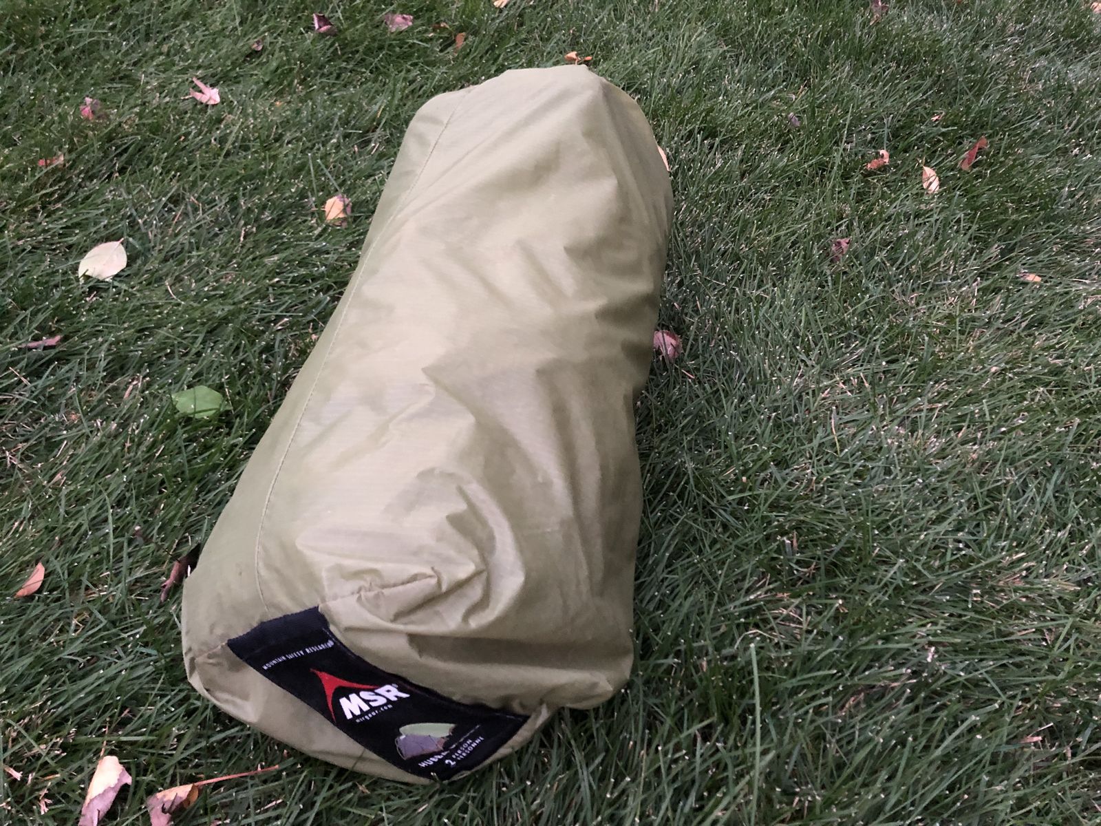 No rips, holes or tears including mesh screens. Includes MSR footprint and rainfly. Requires 8-10 stakes that are Not Included.