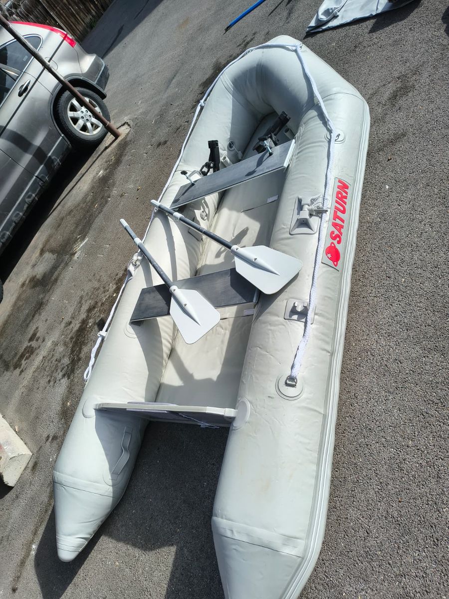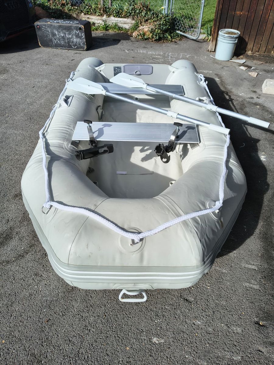 ZelleInflatable boat, inflation and assembly in 15 min, It includes a bracket for mounting an electric or gasoline motor; it supports up to 3 hp. I bought it a year ago, but I have to move for work. I still have the manual and the repair kit (which I never used). It can be registered in Utah.